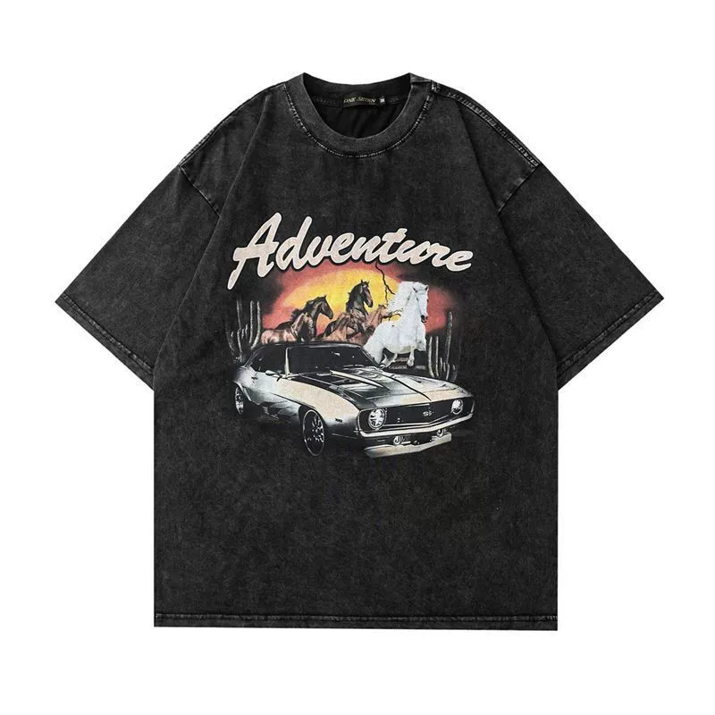 | nameOriginal | Summer new American high street fashion brand retro washed and distressed loose short-sleeved T-shirt for men and women hip-hop |