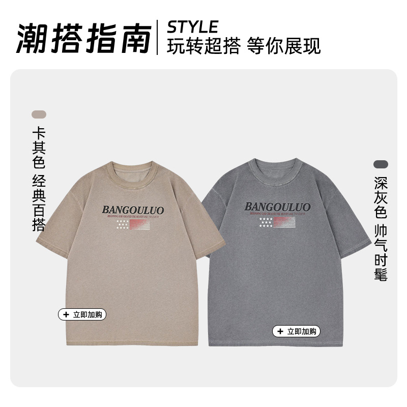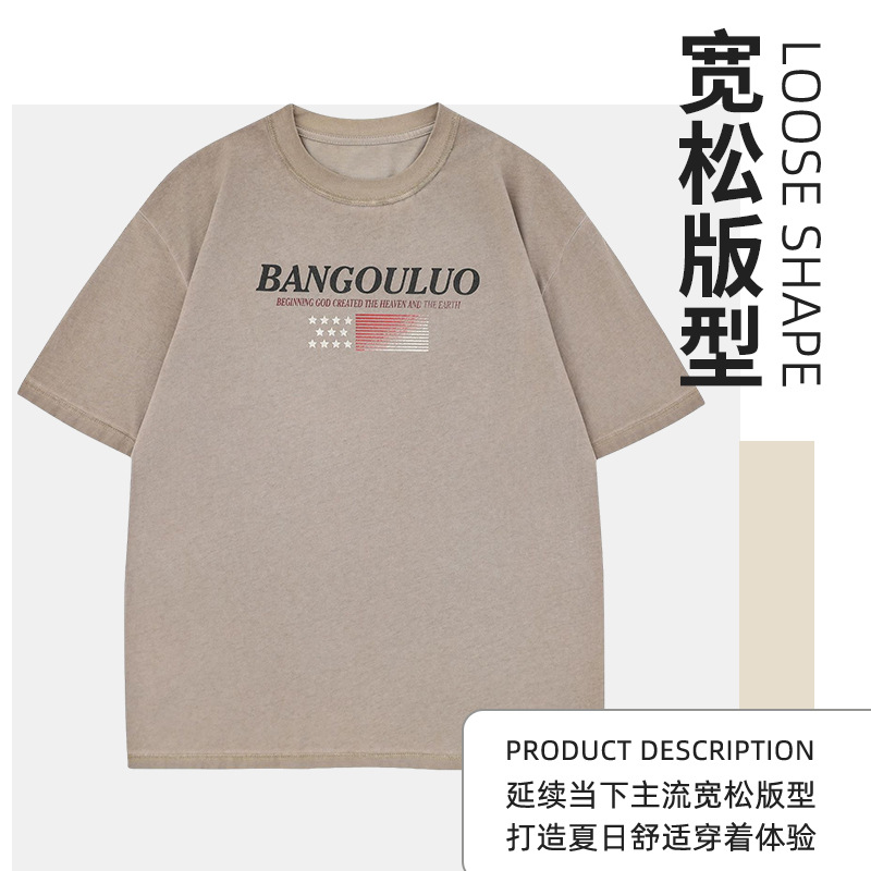Summer New American Style Retro Flag Printing Round Neck Half Sleeve plus size T-shirt Trendy Casual Loose Couple Short Sleeve