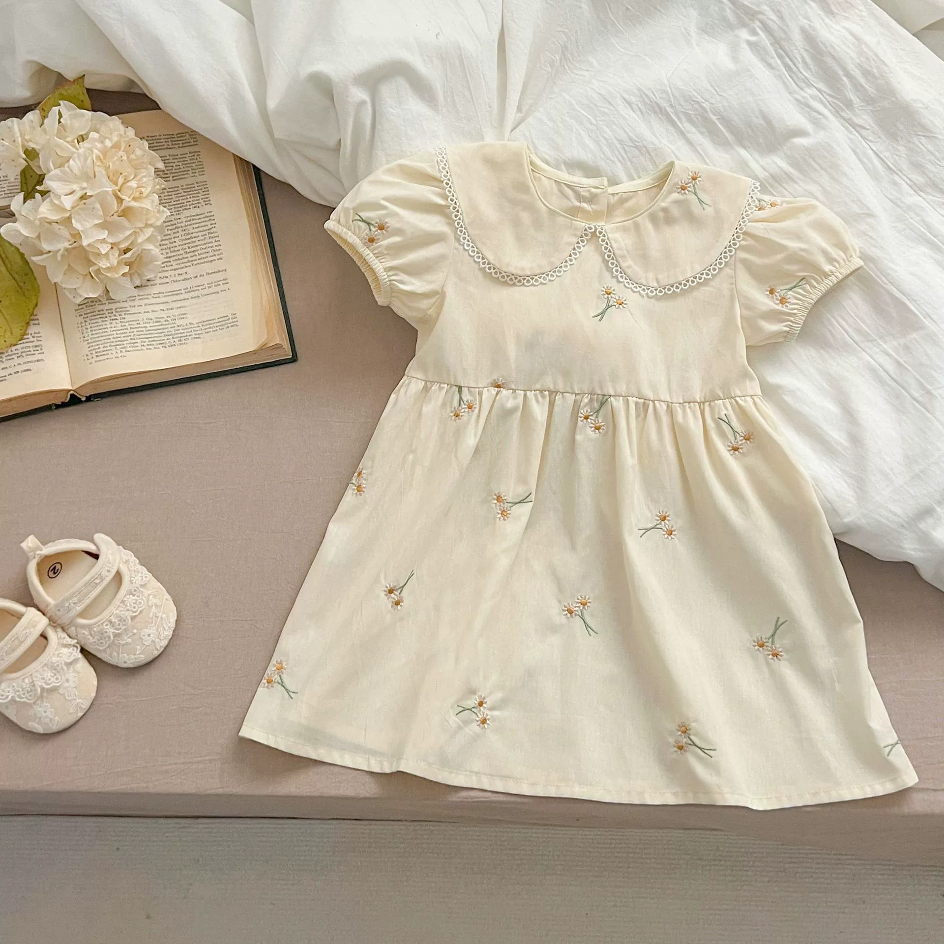 | nameOriginal | Summer new baby girl embroidered floral romper short-sleeved one-piece harem style girl dress sister outfit |