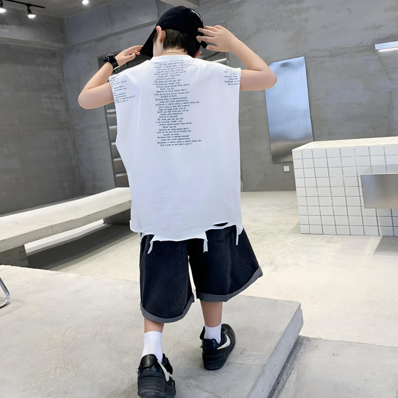 | nameOriginal | Summer New Big Boys Letter Vest Shorts suit Children's Wear Children's Boys Denim Shorts Sleeveless Two-piece Set |