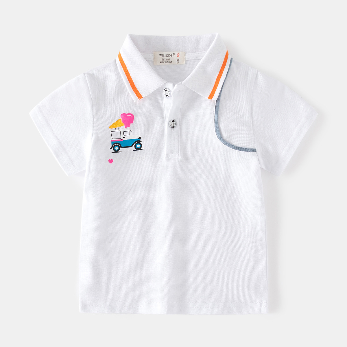 | nameOriginal | Summer new cartoon pattern boys fashion short sleeve printing craft cotton material medium and small boys polo shirt |