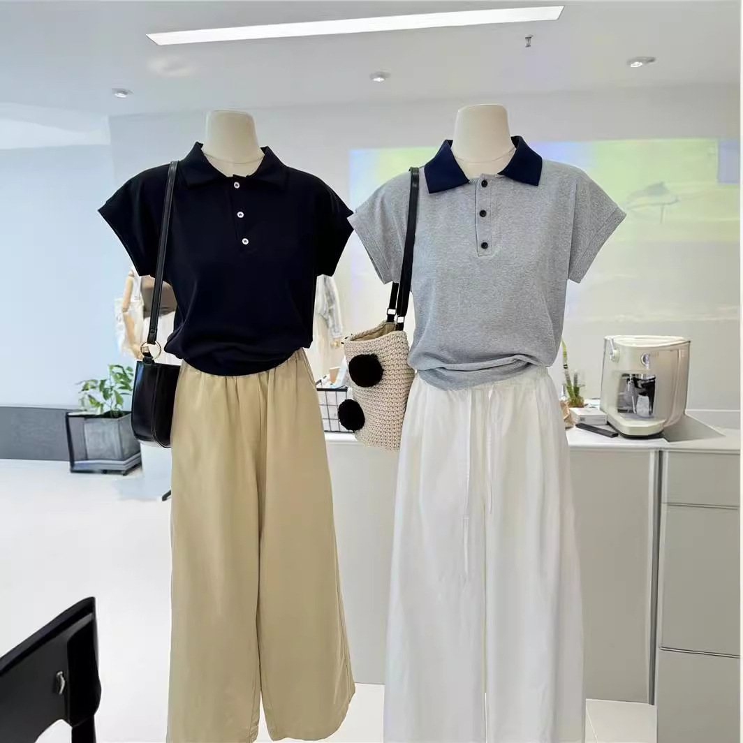 | nameOriginal | Summer New Casual Fresh Style Korean Style Loose Slimming Contrast Lar Polo Shirt Artistic Short-sleeved T-shirt Top |