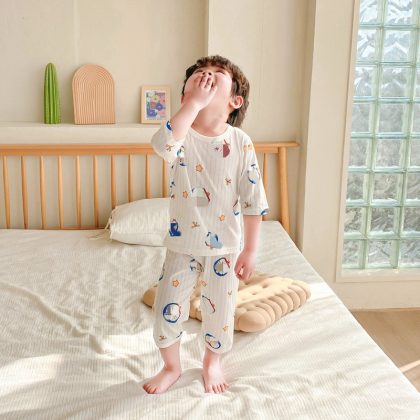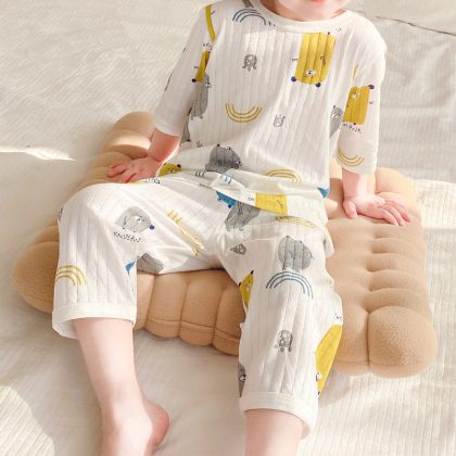 | nameOriginal | Summer New Children's Breathing Cotton Suit Class a Pure Cotton Home Clothes Men's Cute Breathable Girls' Seven-Sleeve Pajamas |