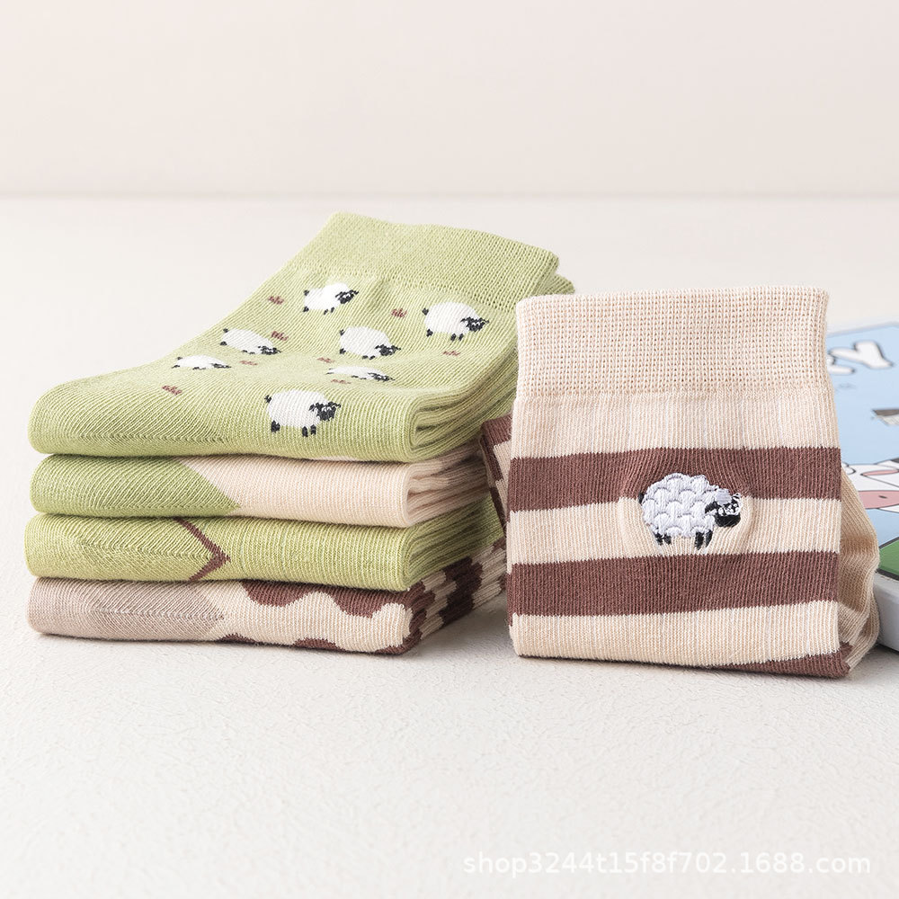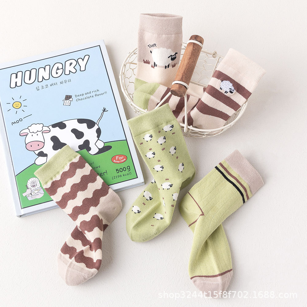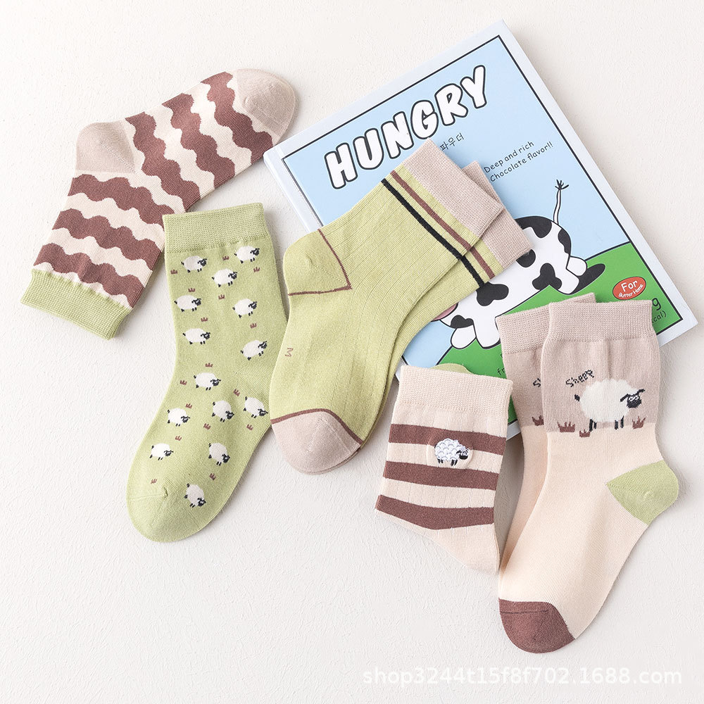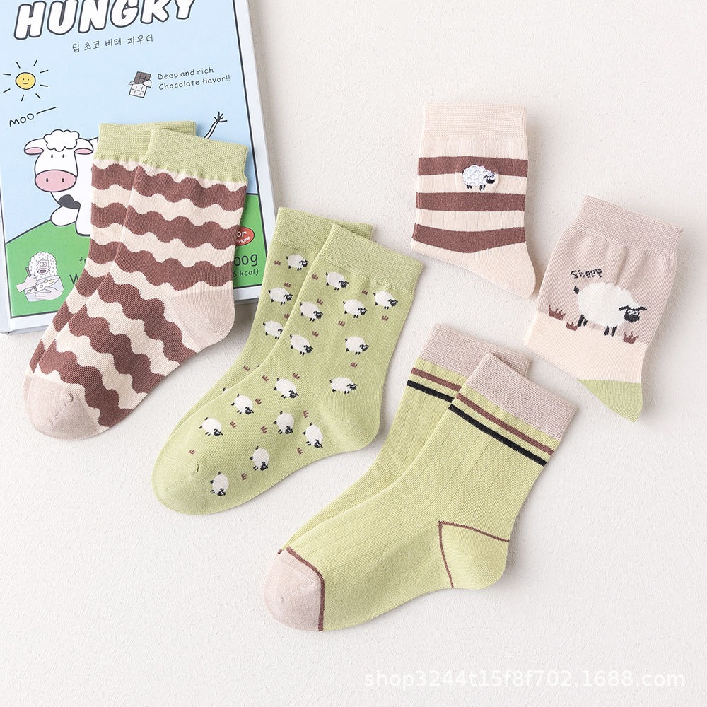 Summer New Children’s Socks Boys and Girls Korean Style Ins Cartoon Striped Student Cotton Socks in stock