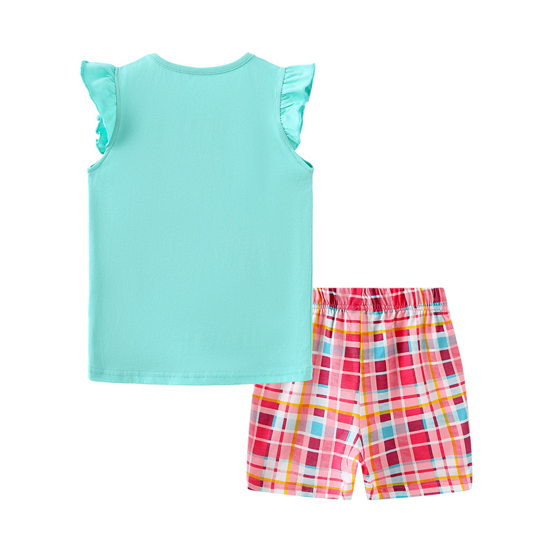 | nameOriginal | Summer new children's T-shirt suit European and American girls' fashion short-sleeved shorts suit cartoon embroidery baby two-piece suit |
