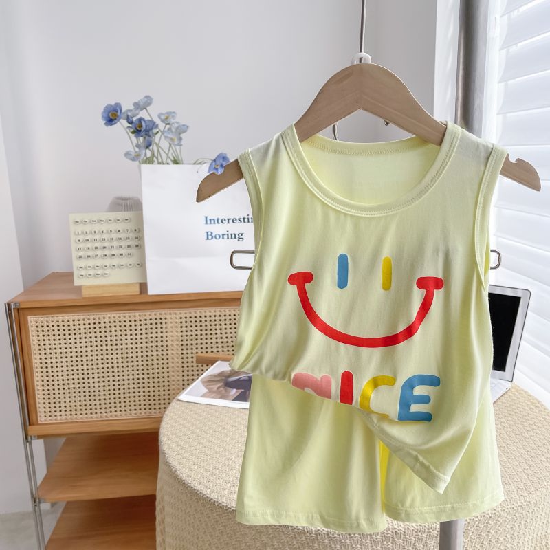Summer New Children's Vest Shorts Modal Thin Cool Korean Printed Sleeveless suit for Boys and Girls