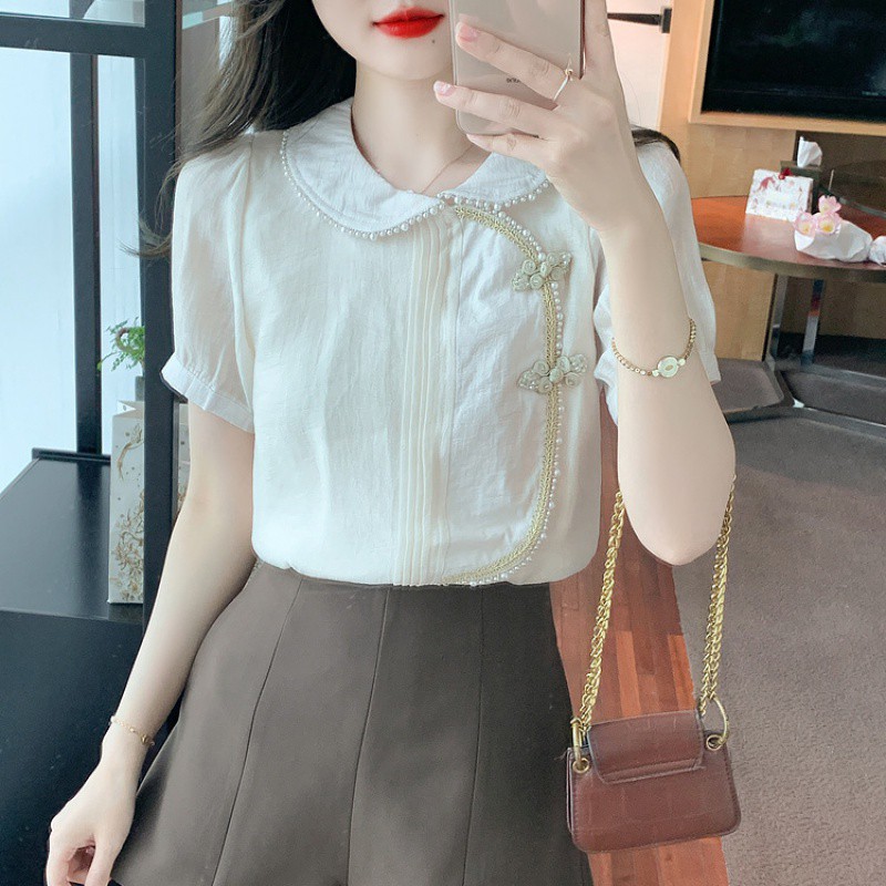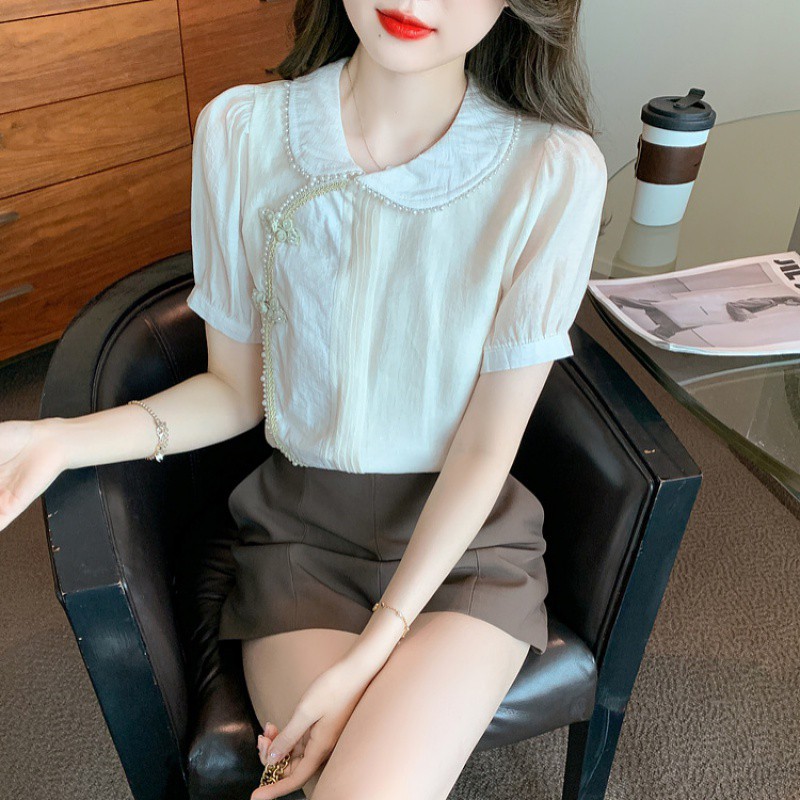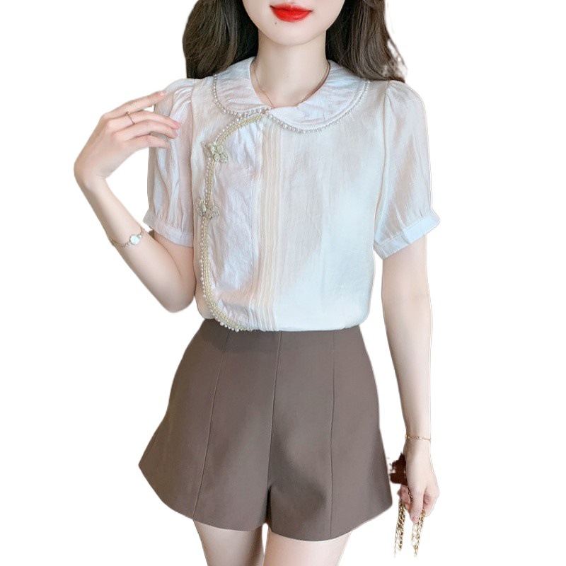 Summer New Chinese Short-sleeved Chiffon Shirt Women’s Summer 2024 New Top Fashionable Western Style Small Shirt