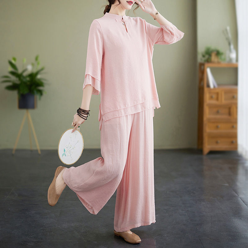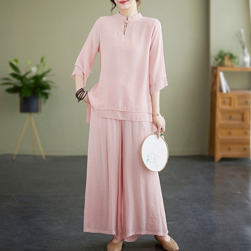 | nameOriginal | Summer New Chinese Style Retro Collar Buckle Cotton and Linen Zen Tea Suit Jushi Clothing National Style Taiji Clothing Yoga Clothing |