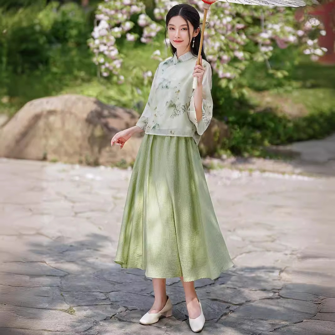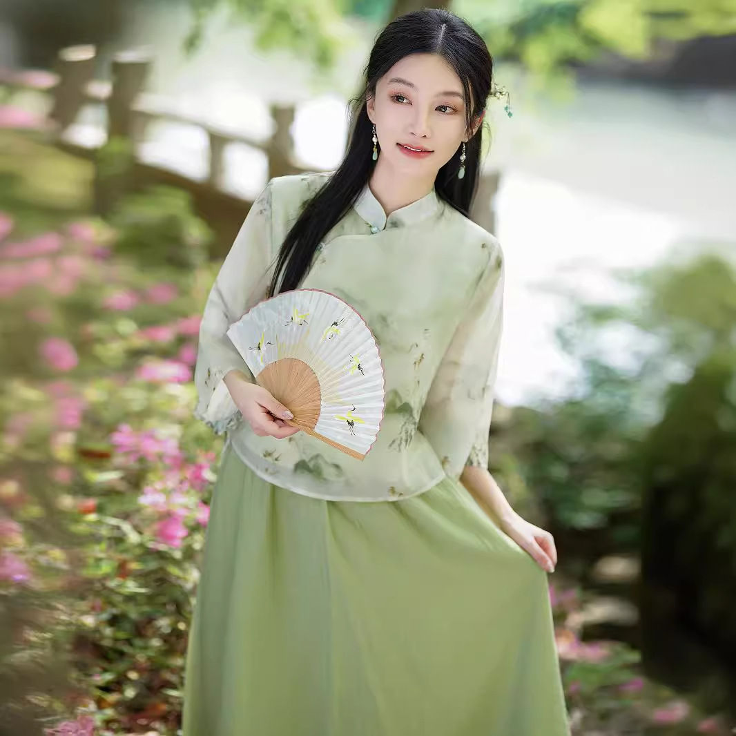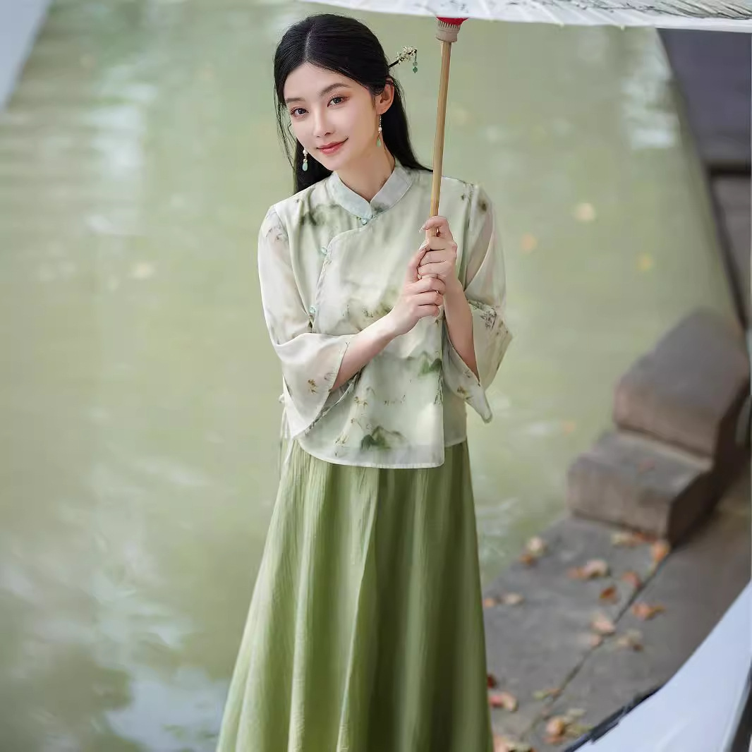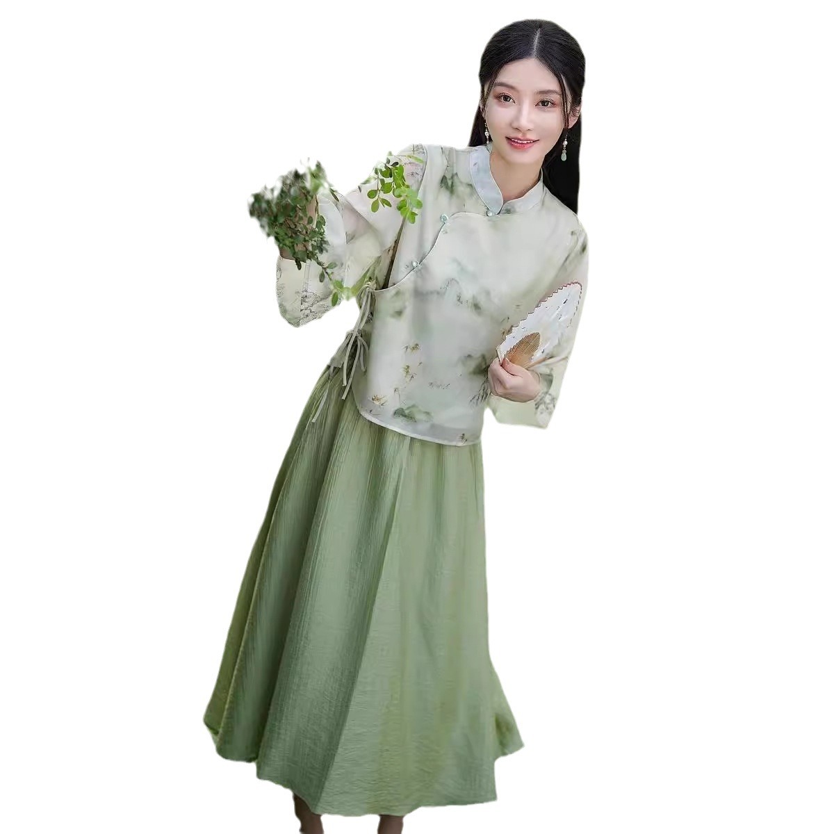 | nameOriginal | Summer New Chinese Style Retro Collar Printing Tang Suit Han Element Temperament Improved Hanfu Cheongsam Top Tea suit |