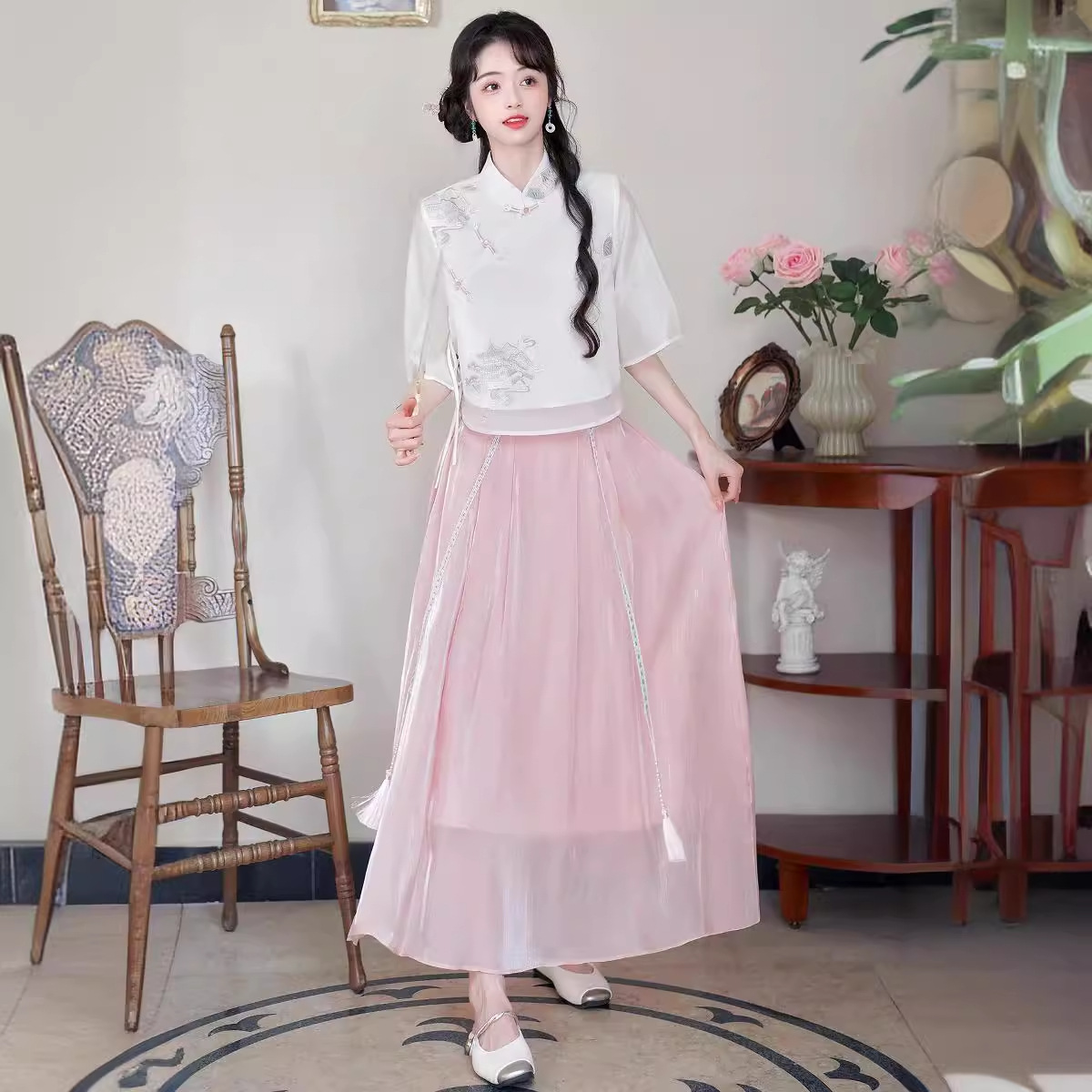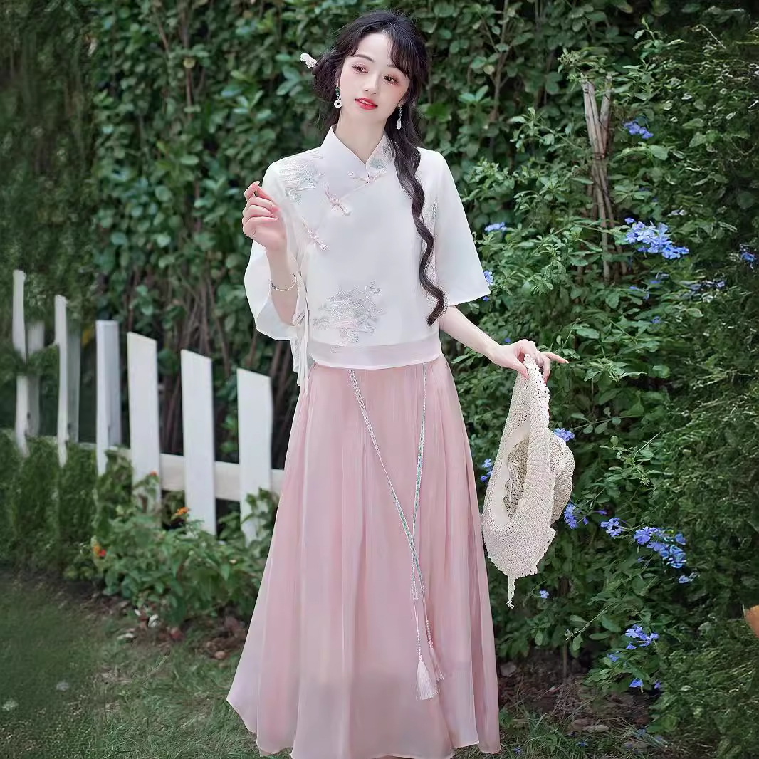 | nameOriginal | Summer New Chinese Style Retro Vertical Collar Embroidered Tang Suit Han Element Fresh and Improved Han Suit Daily Guofeng Tea Suit suit |