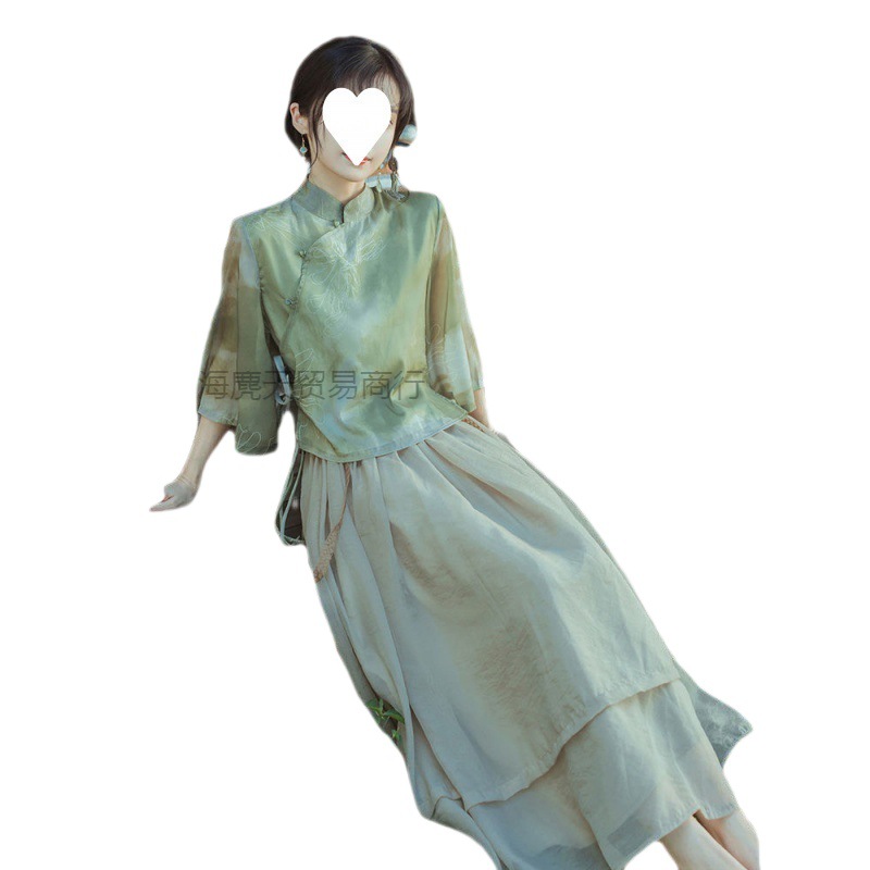 | nameOriginal | Summer New Chinese Tea Artist Hanfu Han Element Zen Republic of China Style Retro Improved Cheongsam Dress Two-piece Set |