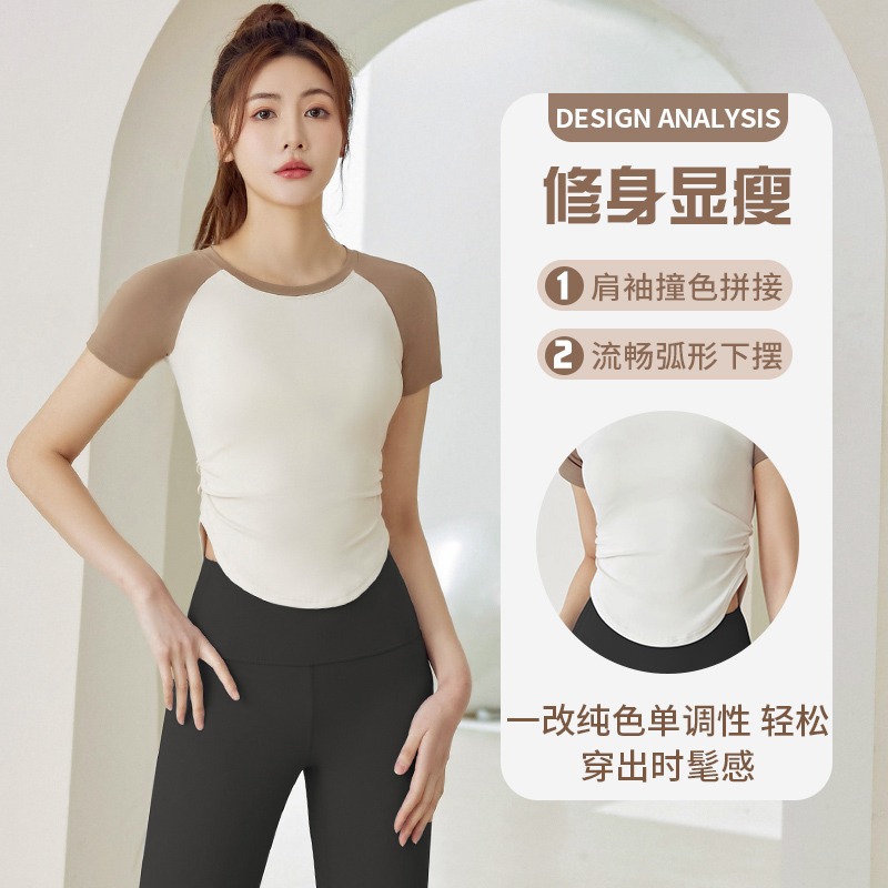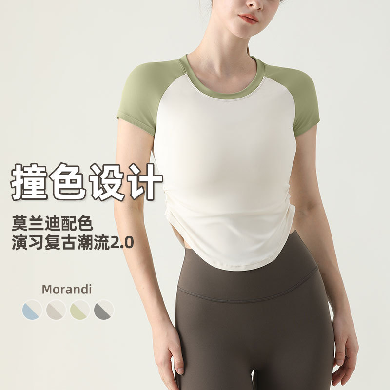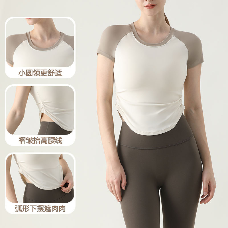 | nameOriginal | Summer New Color Matching T-shirt Sports Short Sleeve Slimming Naked Yoga suit Sports Fitness Outdoor Wear Top |