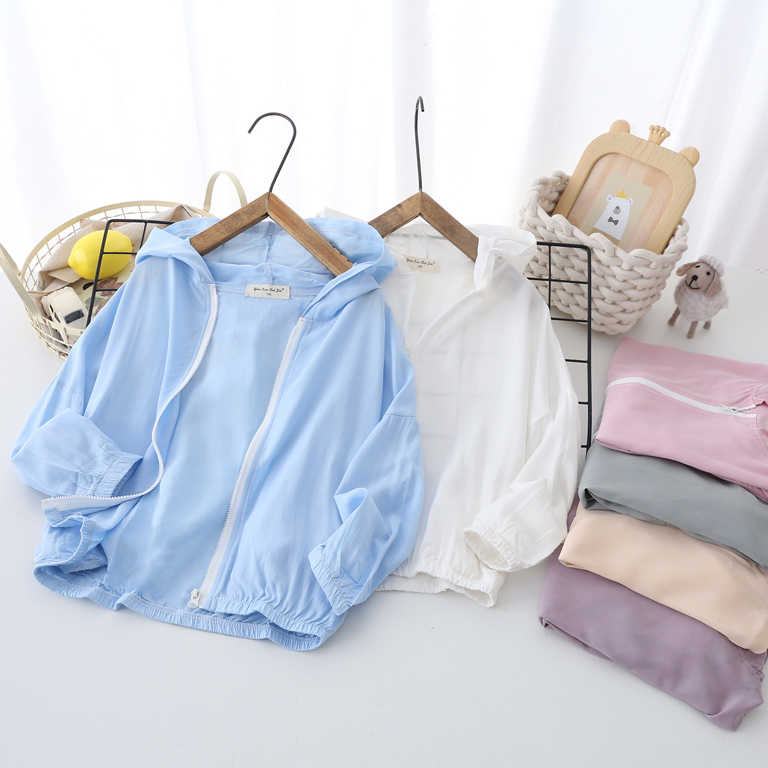 | nameOriginal | Summer new cotton silk children's solid color sun protection clothing men's and women's long-sleeved light-proof baby breathable parent-child wear hooded |
