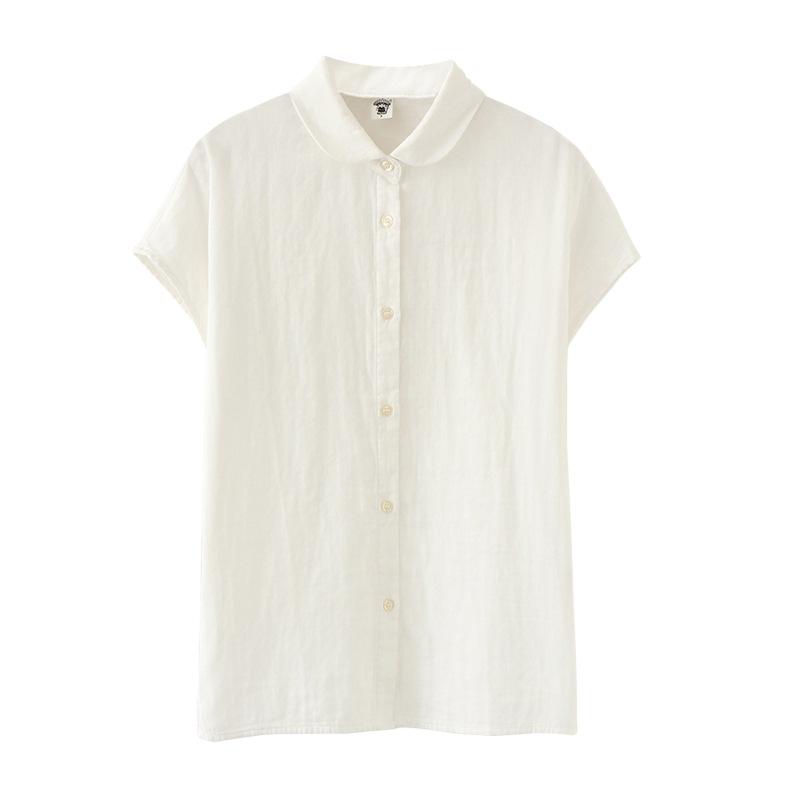 Summer new doll collar double-layer cotton yarn shirt women’s short-sleeved artistic small new cotton yarn shirt factory direct batch