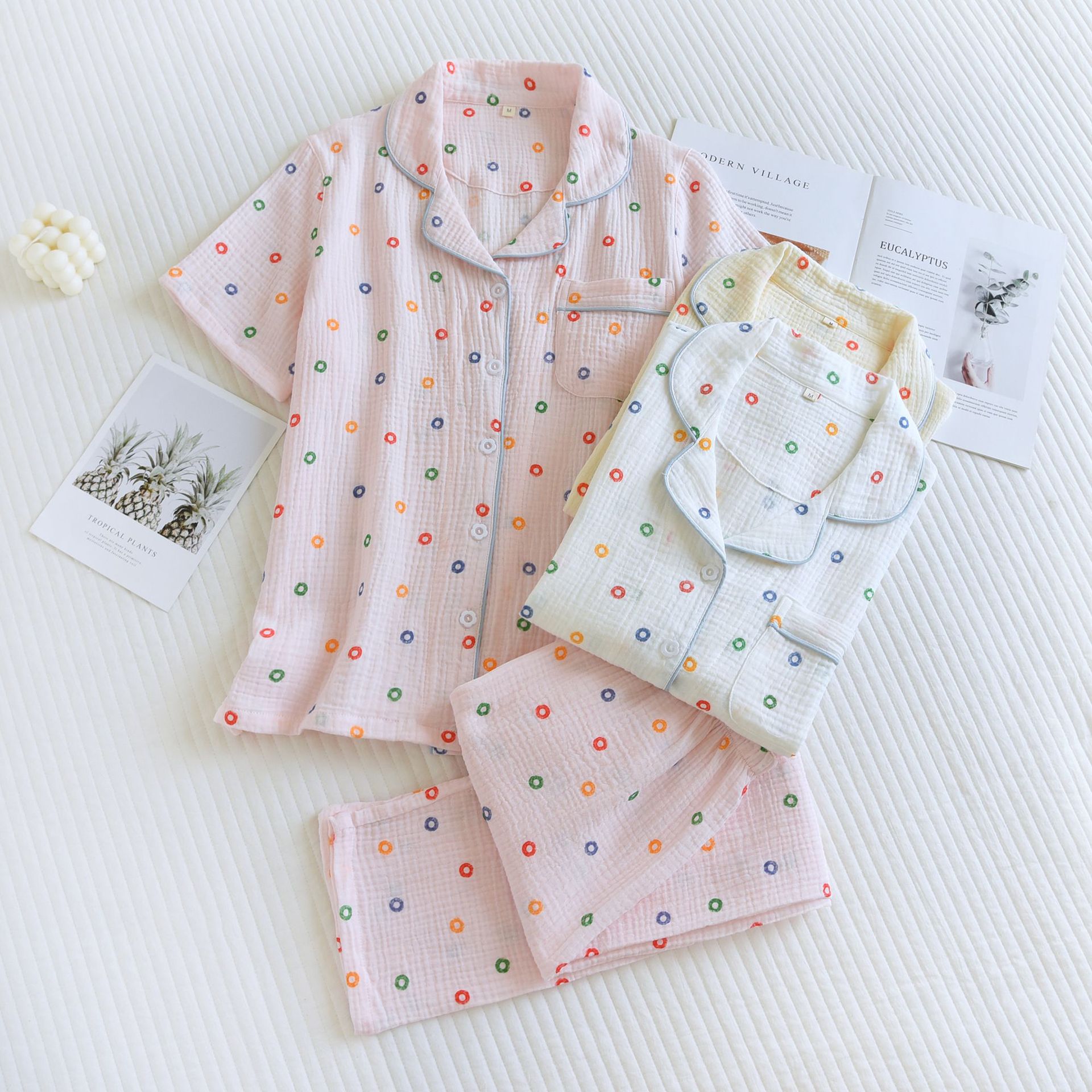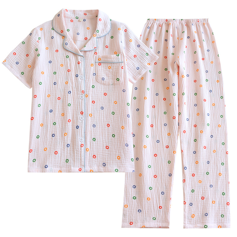 Summer New Double Layer Cotton Yarn Home Clothes All Cotton Pajamas Crepe Short Sleeve Trousers Casual Breathable Large Size Pajamas