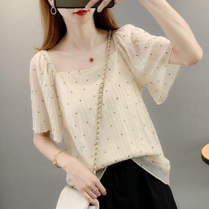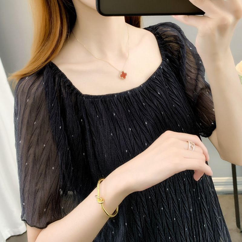 | nameOriginal | Summer New Elegant Tulle Mesh Chiffon Shirt Loose Slimming Casual plus size Women's Clothing Hong Kong Wind Feifei Sleeve Top |