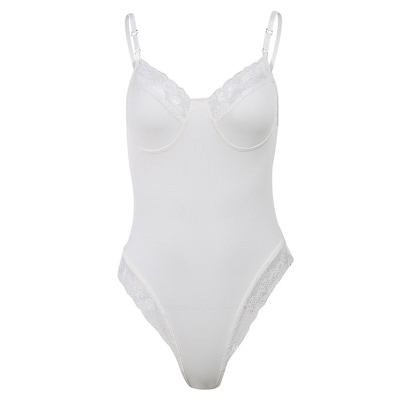 Summer New European and American Sexy Slim-Fit Lace Stitching Knitted Design Sling Jumpsuit