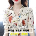 Summer New Fashion All-match Mulberry Silk Printed Loose Top Women’s Elegant Ruffled Short-sleeved Thin Shirt