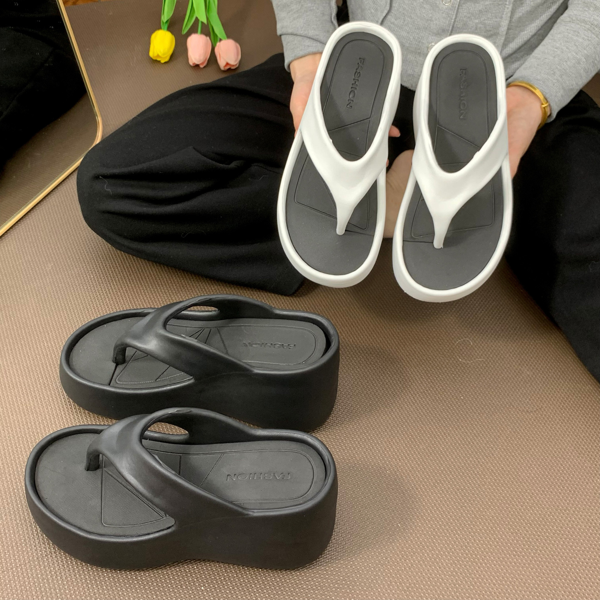 Summer New Fashion All-match Outer Wear Thickness Increased 9CM Beach Flip Flops Jieyang EVA High Heel Flip Flops
