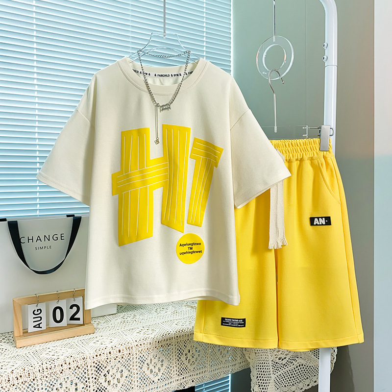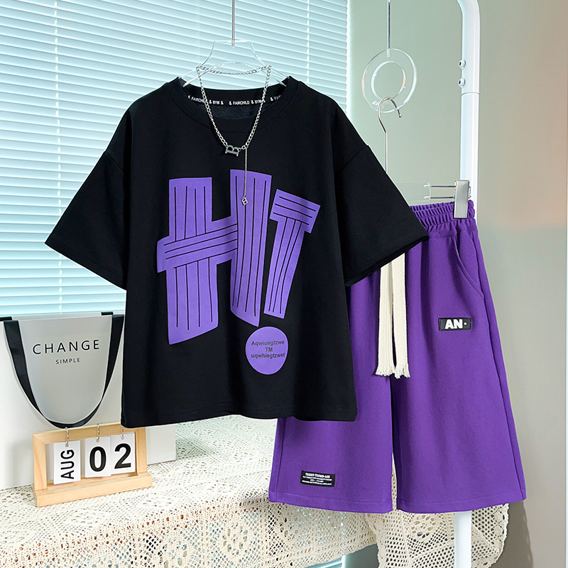 | nameOriginal | Summer new fashion short sleeve two-piece set 2024 boys casual fashion short T-shirt medium and big children western style shorts suit |