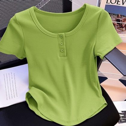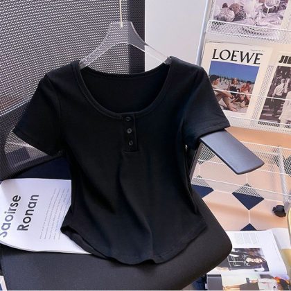 | nameOriginal | Summer New Fashion Shoulder Short-sleeved Shirt Women's Design Sense Irregular Curved Flesh Covering Slim Short Top |