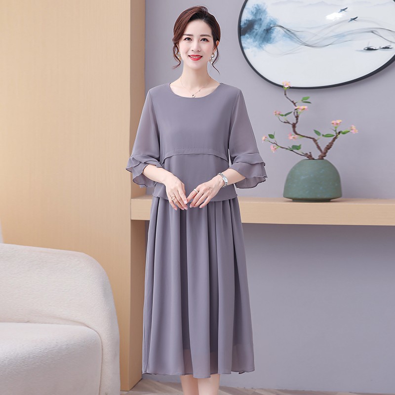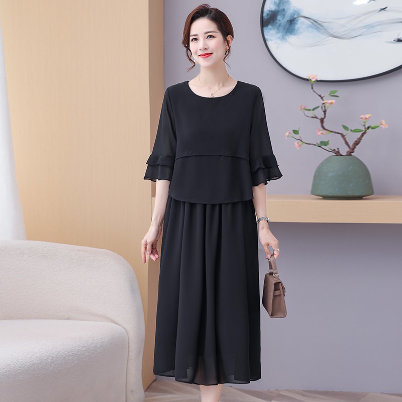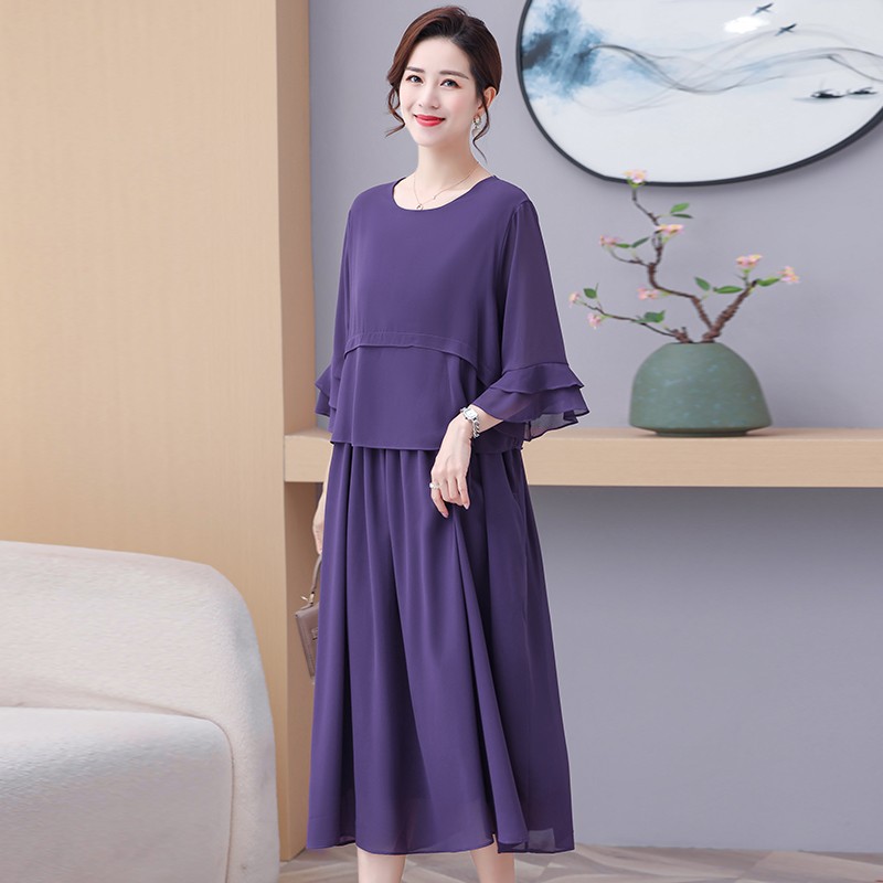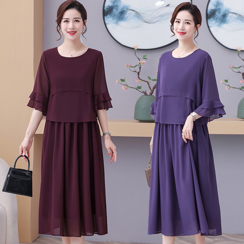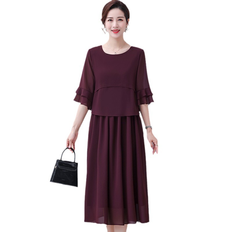 | nameOriginal | Summer New Fashionable Elegant Chiffon dress Middle-aged Mother's Fit Slimming Fake Two-piece Skirt Mid-length |