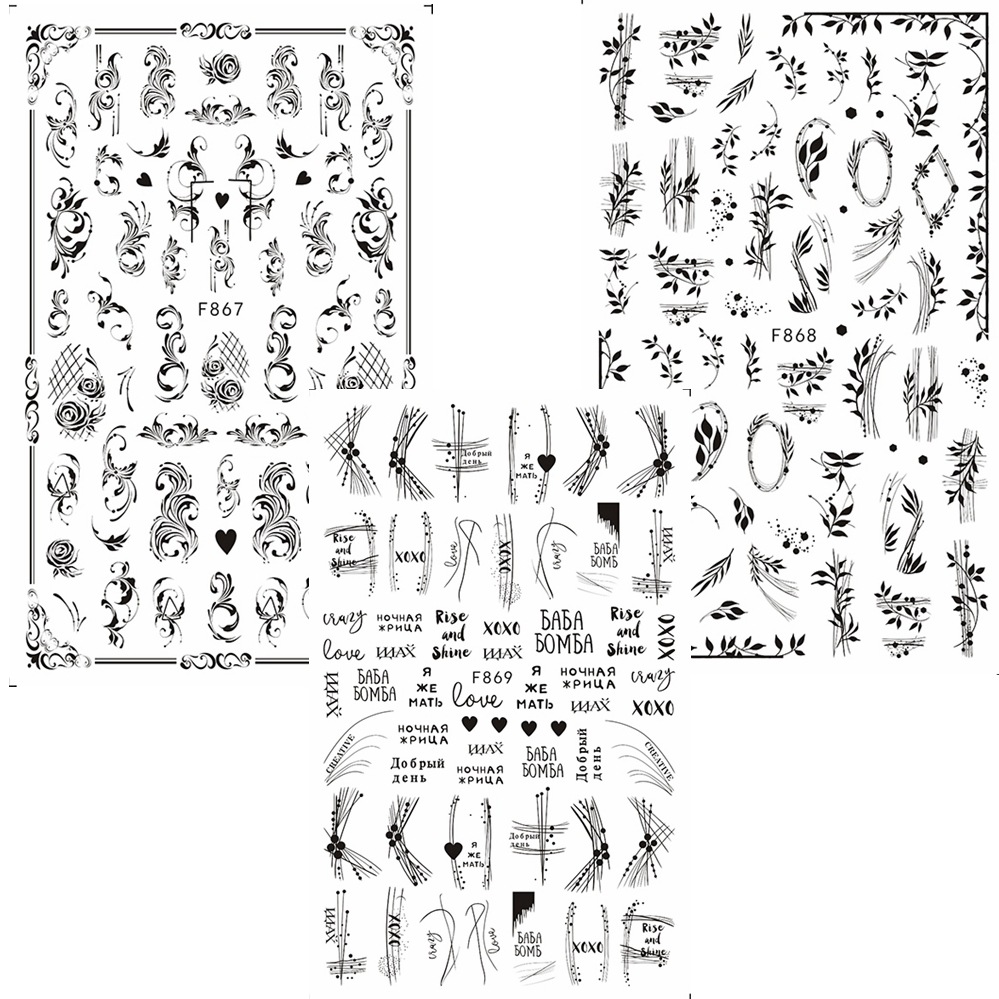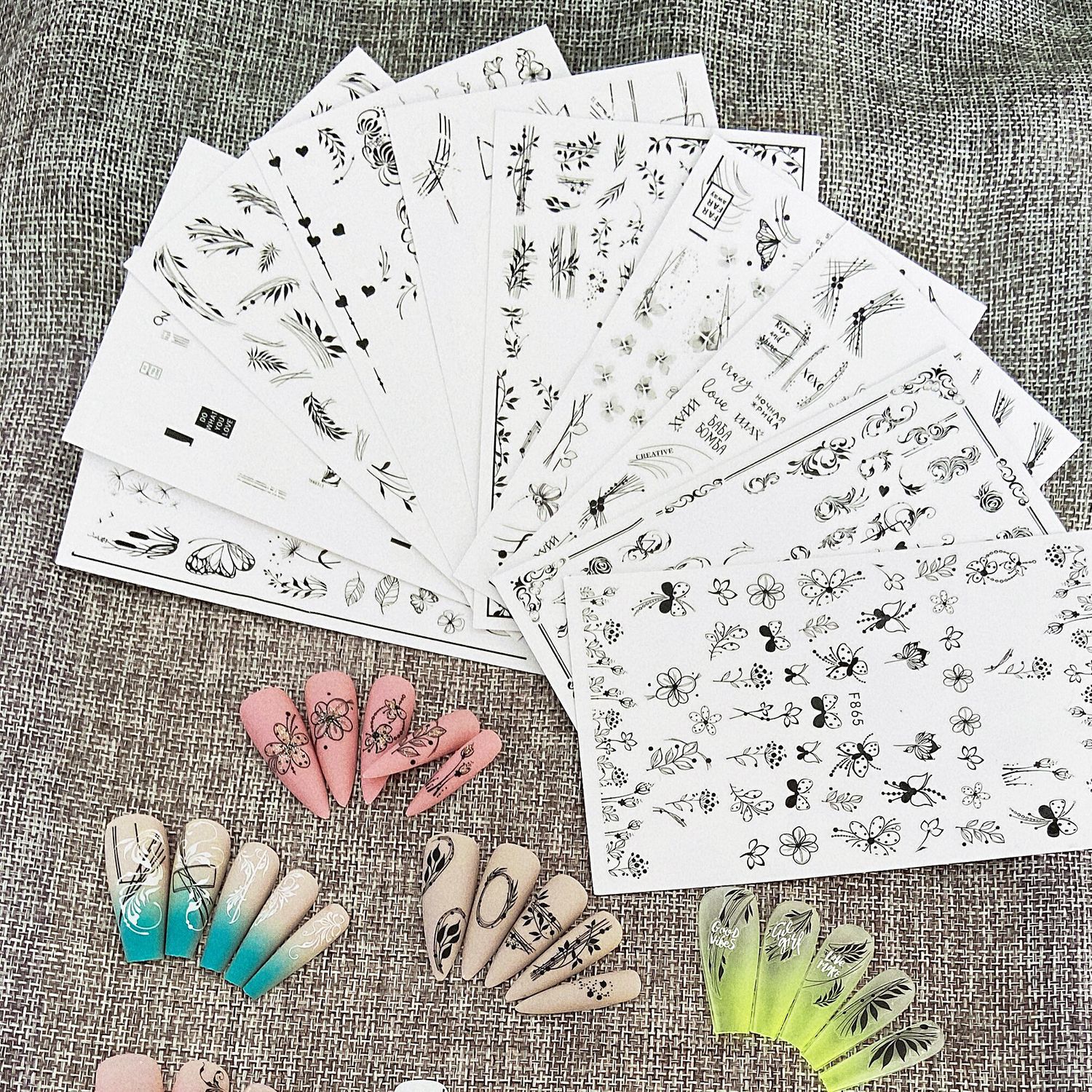 Summer new flower nail stickers black and white flower art lines nail stickers wholesale Yiwu