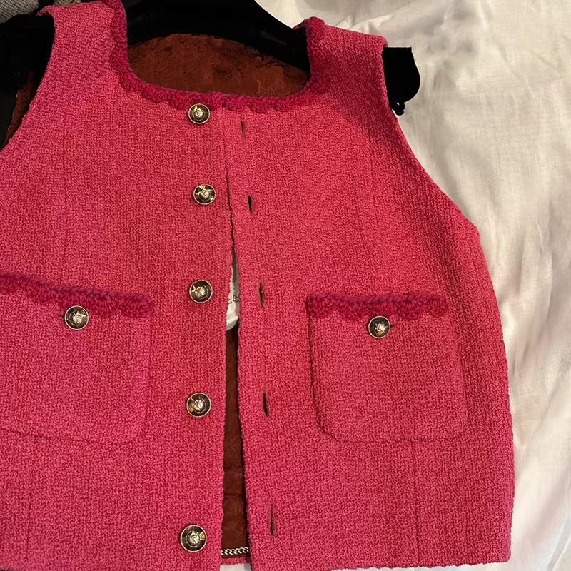 | nameOriginal | Summer New French Style Chanel Style Rose Red High-end Vest Light Luxury Socialite Slimming Short Top M6051 |