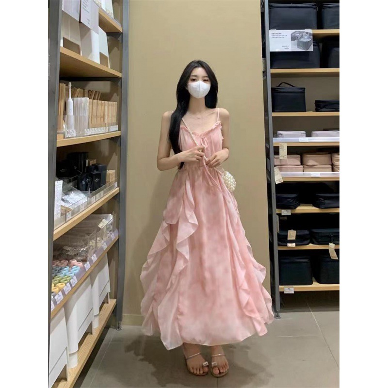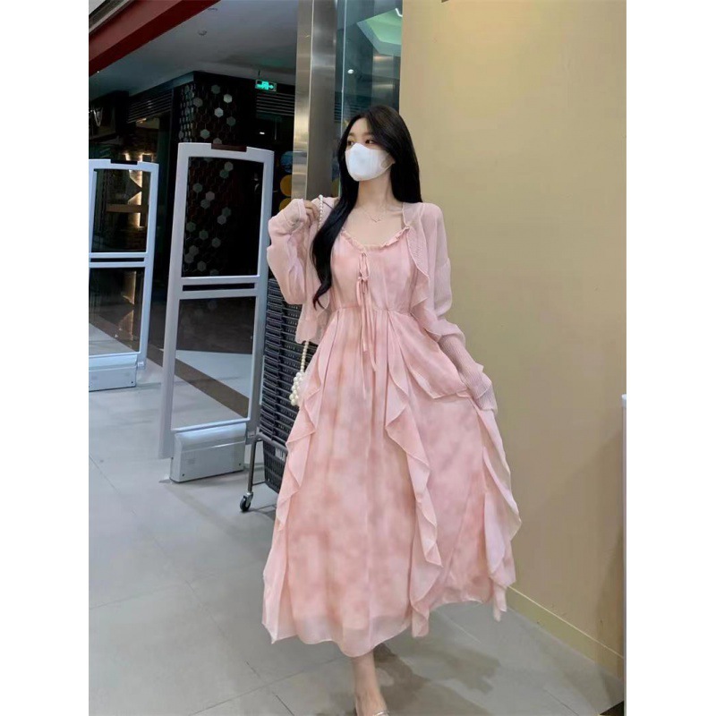 | nameOriginal | Summer New Gentle Style Pink Floral Slip Skirt Cardigan Two-Piece Set Small Fairy dress suit Women |