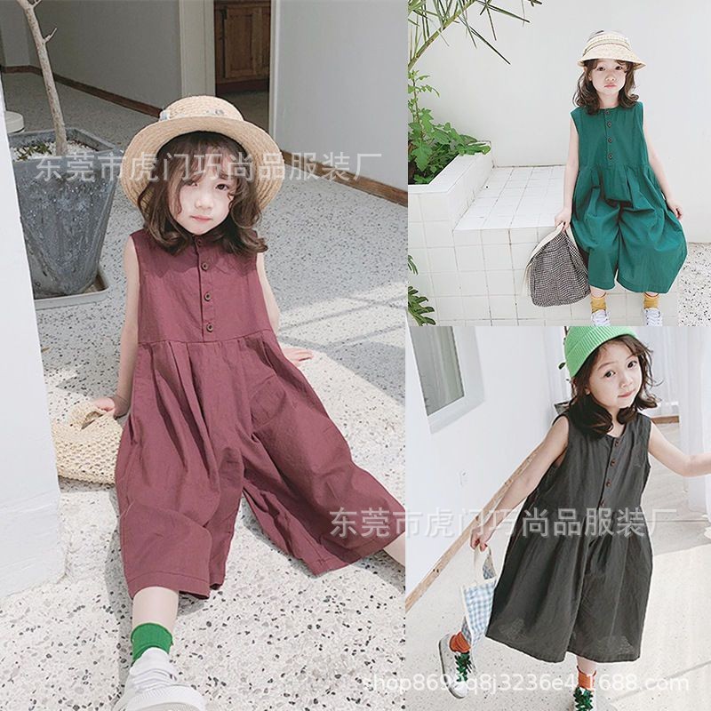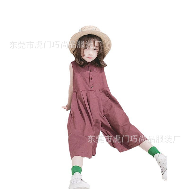 | nameOriginal | Summer new girls jumpsuit in stock cross-border foreign style single-breasted wide leg pants sleeveless jumpsuit a generation of hair |