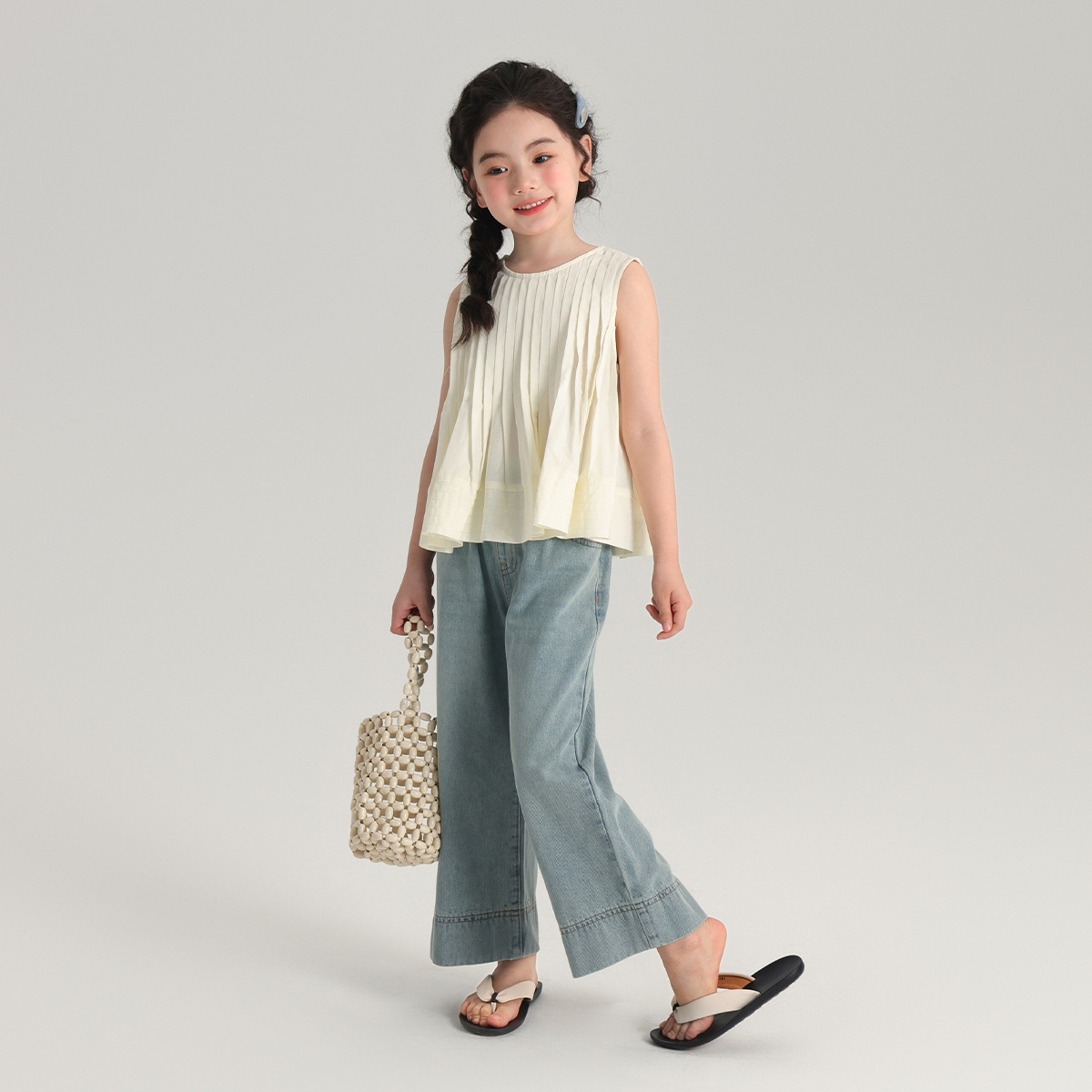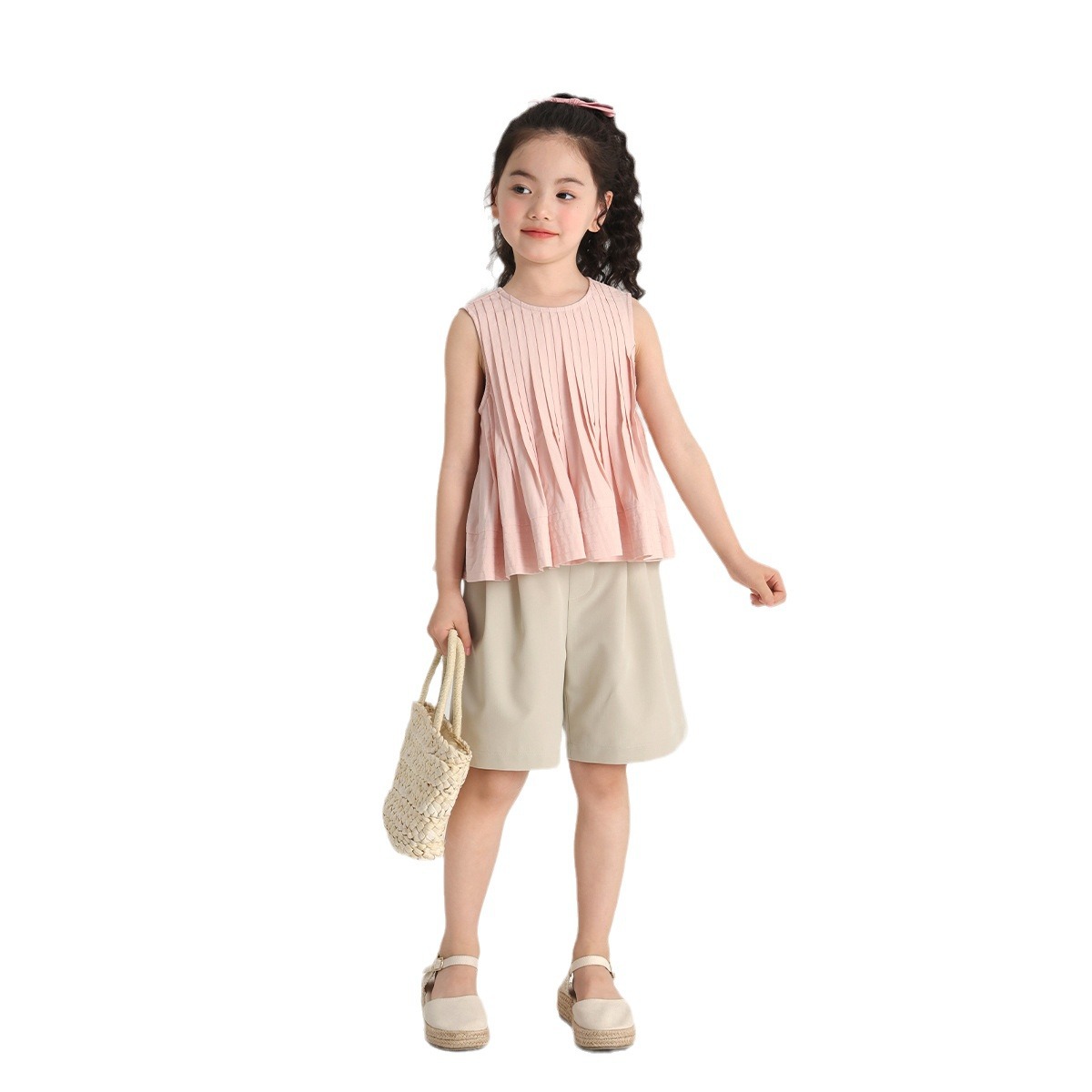 | nameOriginal | Summer New Girls' Top 2024 Summer New Children's Casual Short-sleeved Pleated Shirt |