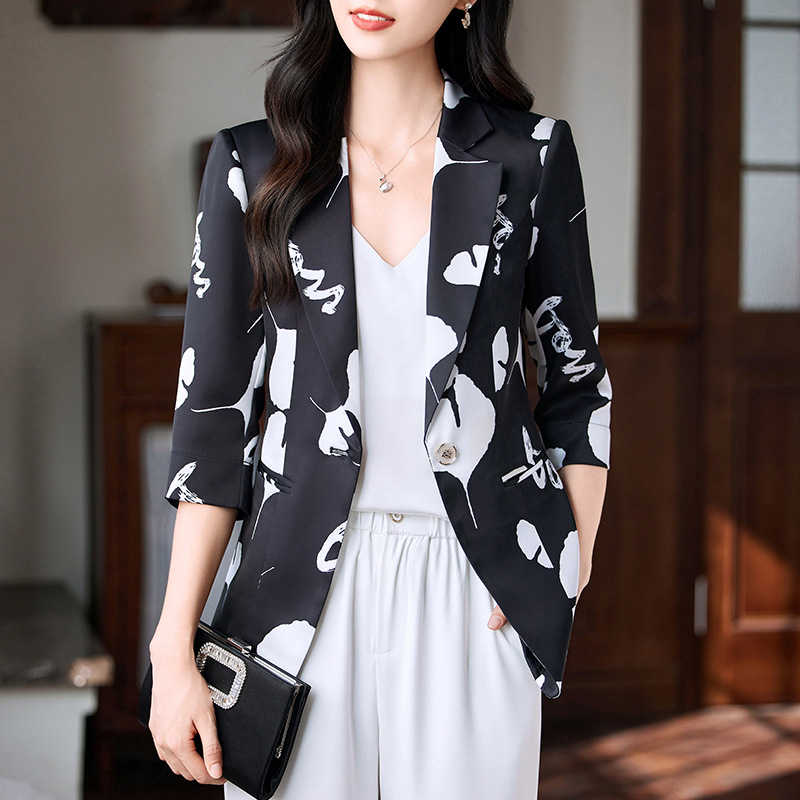 | nameOriginal | [Summer new] high-grade imitation acetic acid satin small suit jacket women's slim fashion commuter casual suit |
