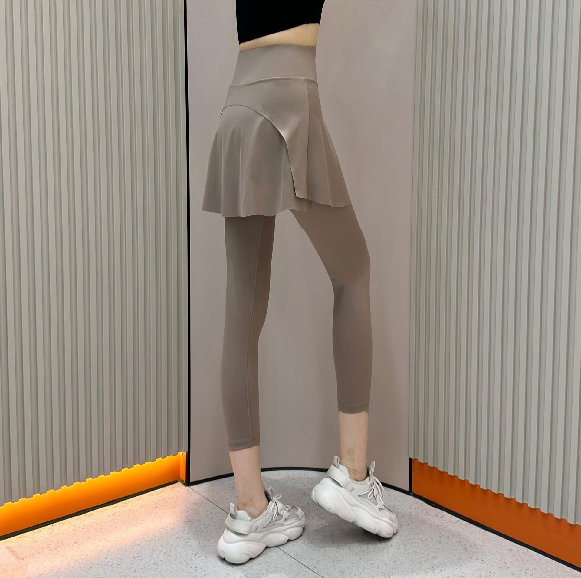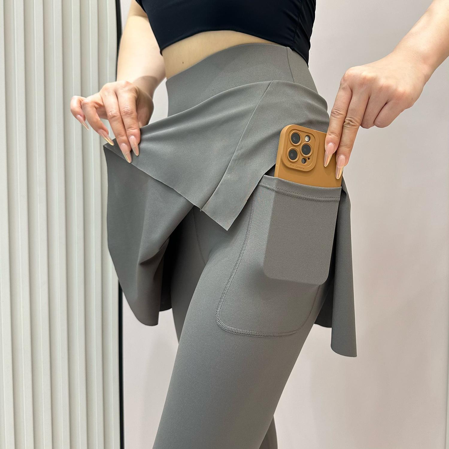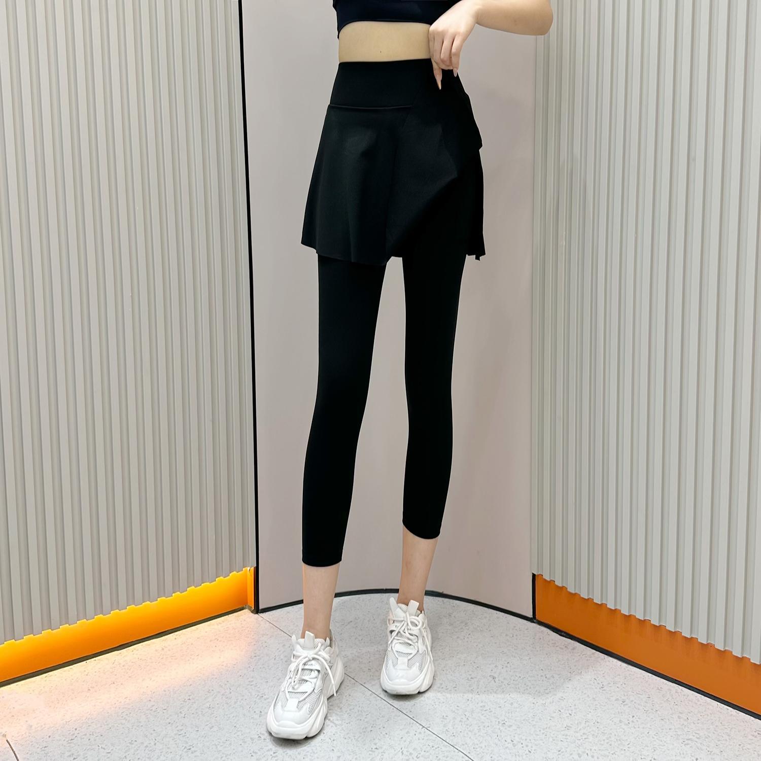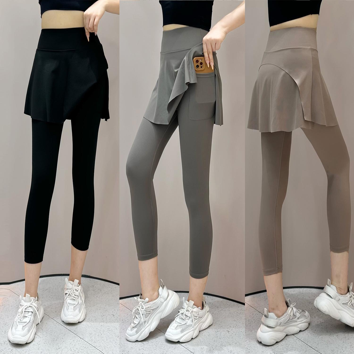 Summer New High Waist Capri Pants Pocket Belly-closed Culottes Fashion Sports Fake Two-piece Running Fitness Outer Wear Yoga