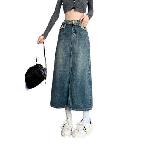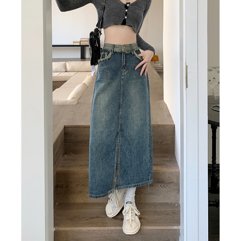 | nameOriginal | Summer New High Waist Slimming Design Sense Niche Raw Edge Split A- shaped Denim Skirt Small Women's Skirt |