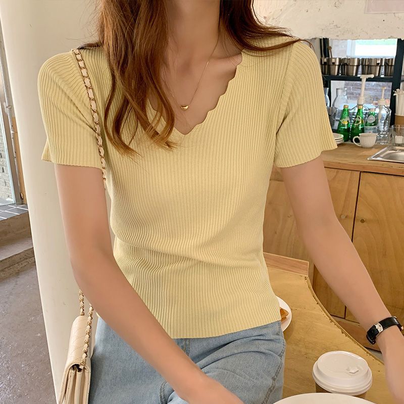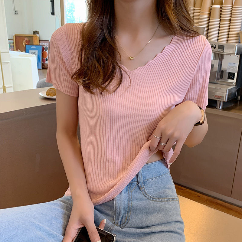 | nameOriginal | Summer New Ice Silk Knitted T-shirt Female Student Korean Loose Short Top Solid Color Thin Base Shirt Ins Top |