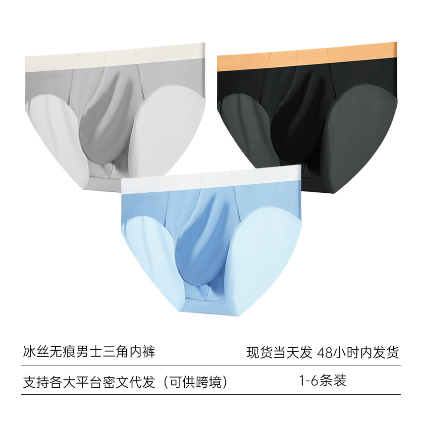 | nameOriginal | Summer new ice silk seamless men's briefs contrast color large bag ultra-thin breathable quick-drying fashion men's underwear |