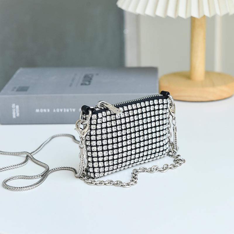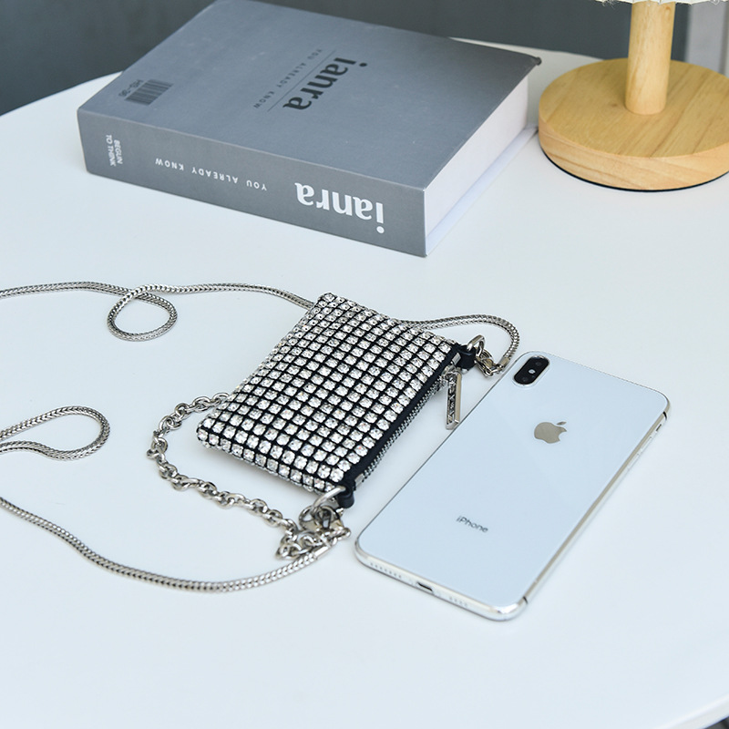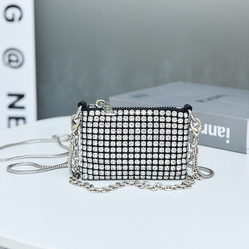 Summer new imported rhinestone lipstick bag ins Internet celebrity mini rhinestone chain messenger bag full diamond card pouch