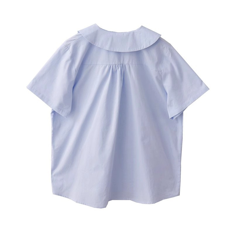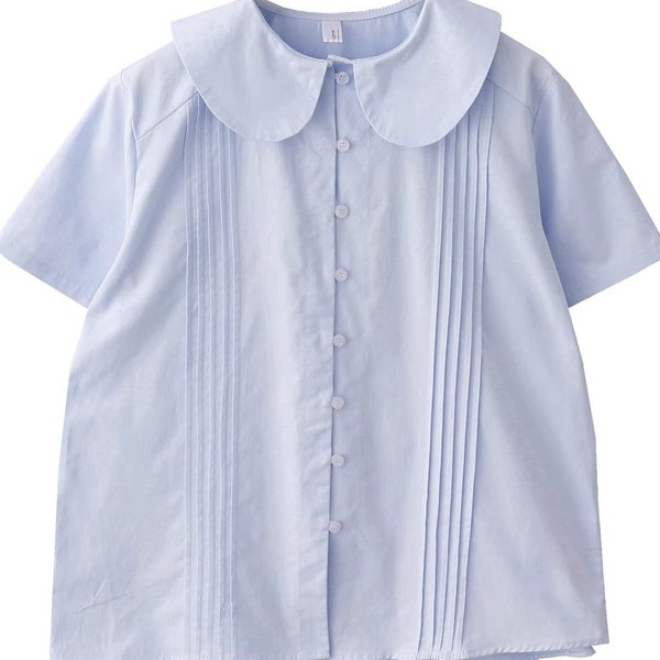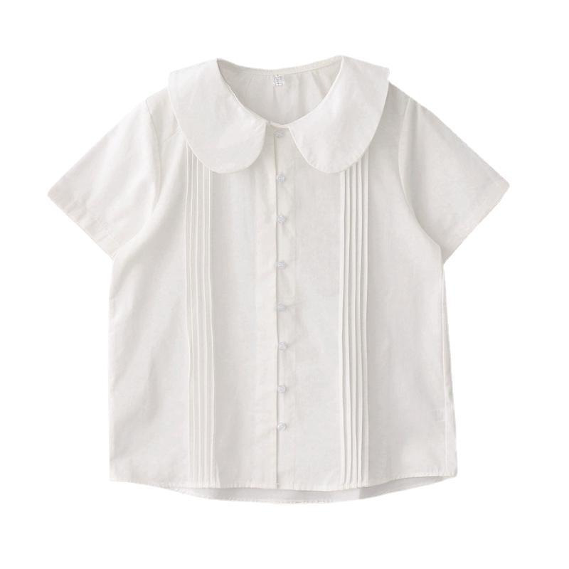 Summer New Japanese Cute Cute Vintage Organ Pleated Cotton Loose Doll Collar Shirt Shirt Top
