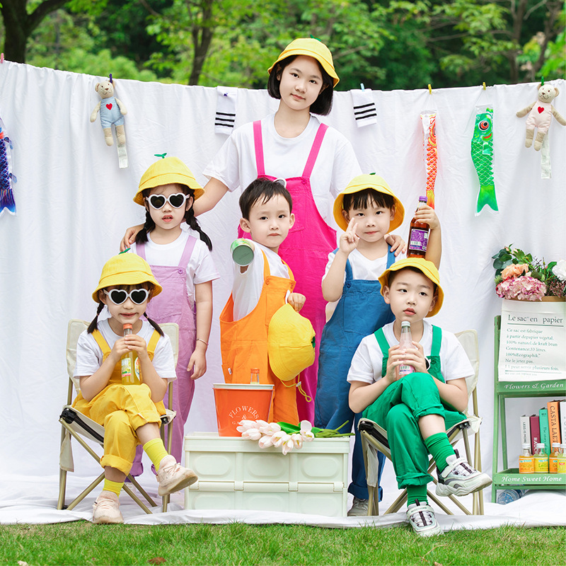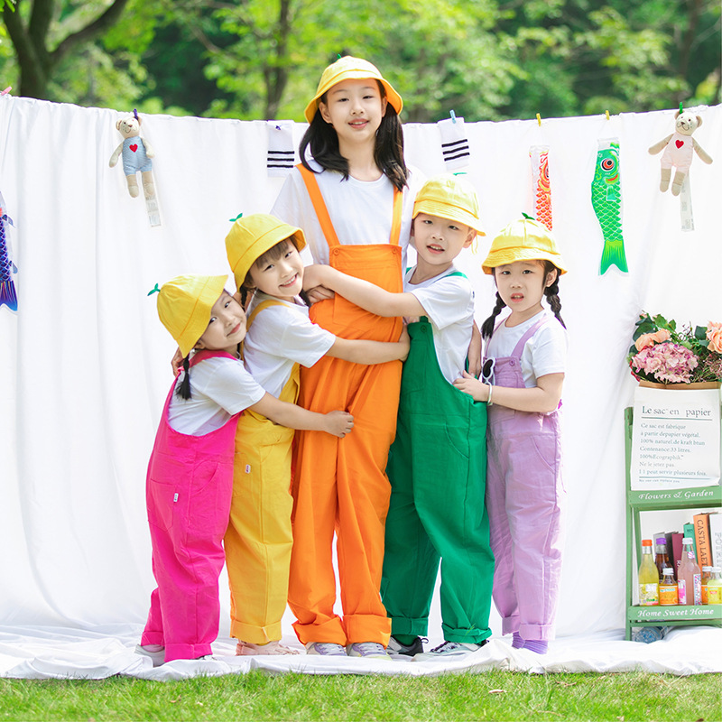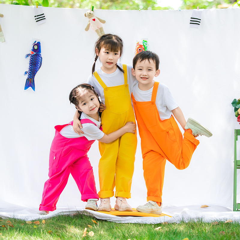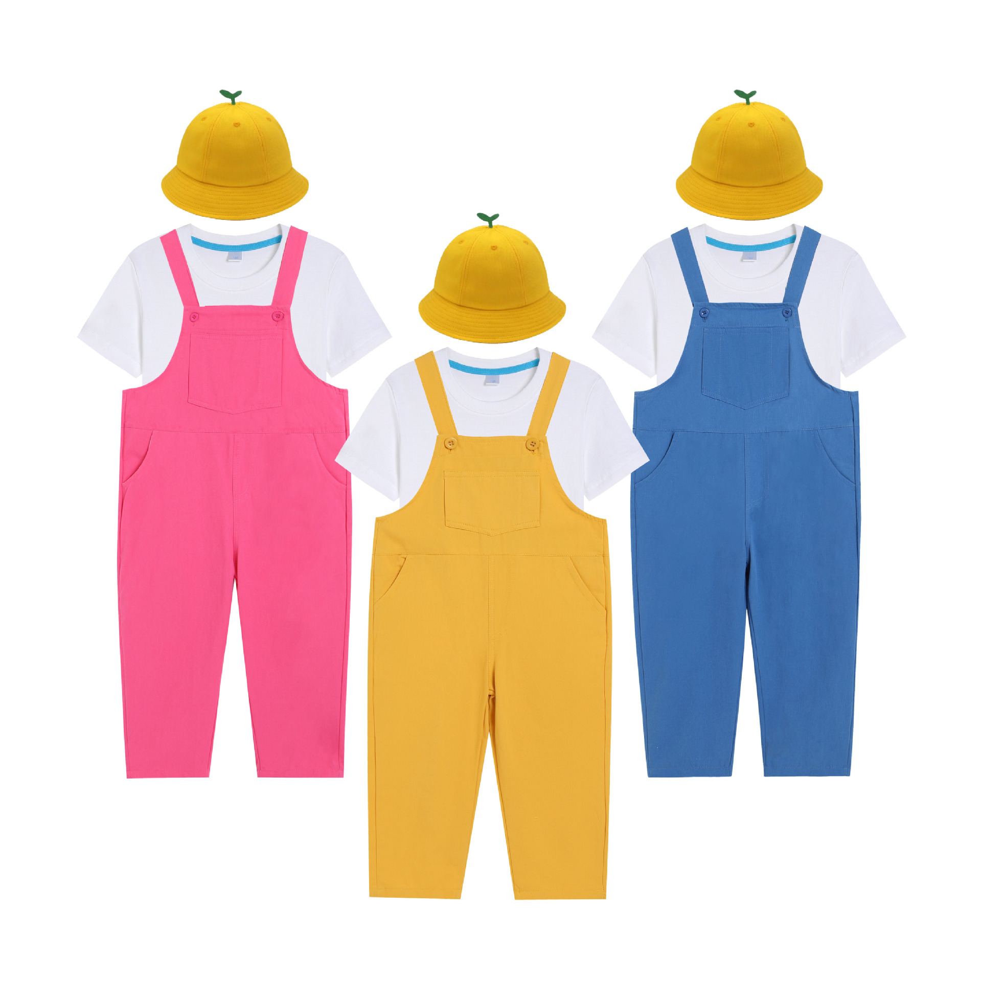 | nameOriginal | Summer new kindergarten graduation photo boys and girls suspender pants suit pure cotton colorful 61 performance clothes dance clothes |
