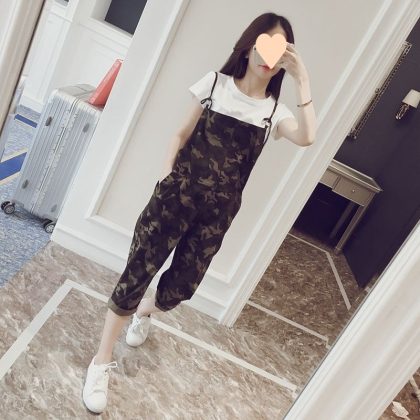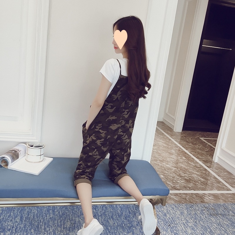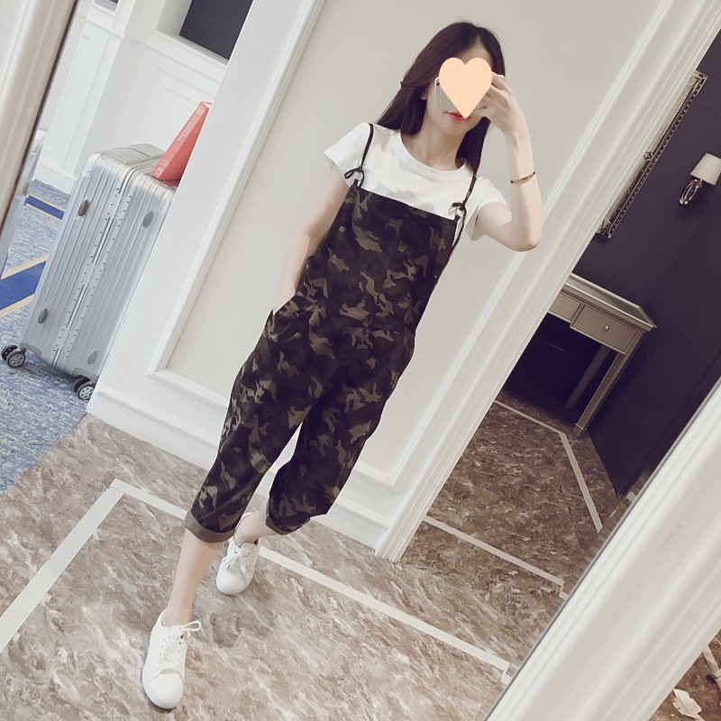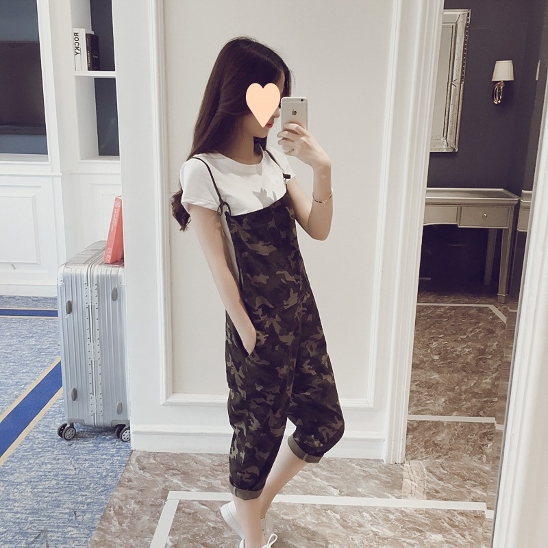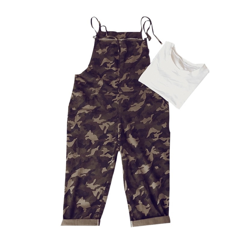 | nameOriginal | Summer New Korean Camouflage Denim Suspender Pants Women's Ankle-length Pants Loose Slimming Harlan Two-piece Set for Women |