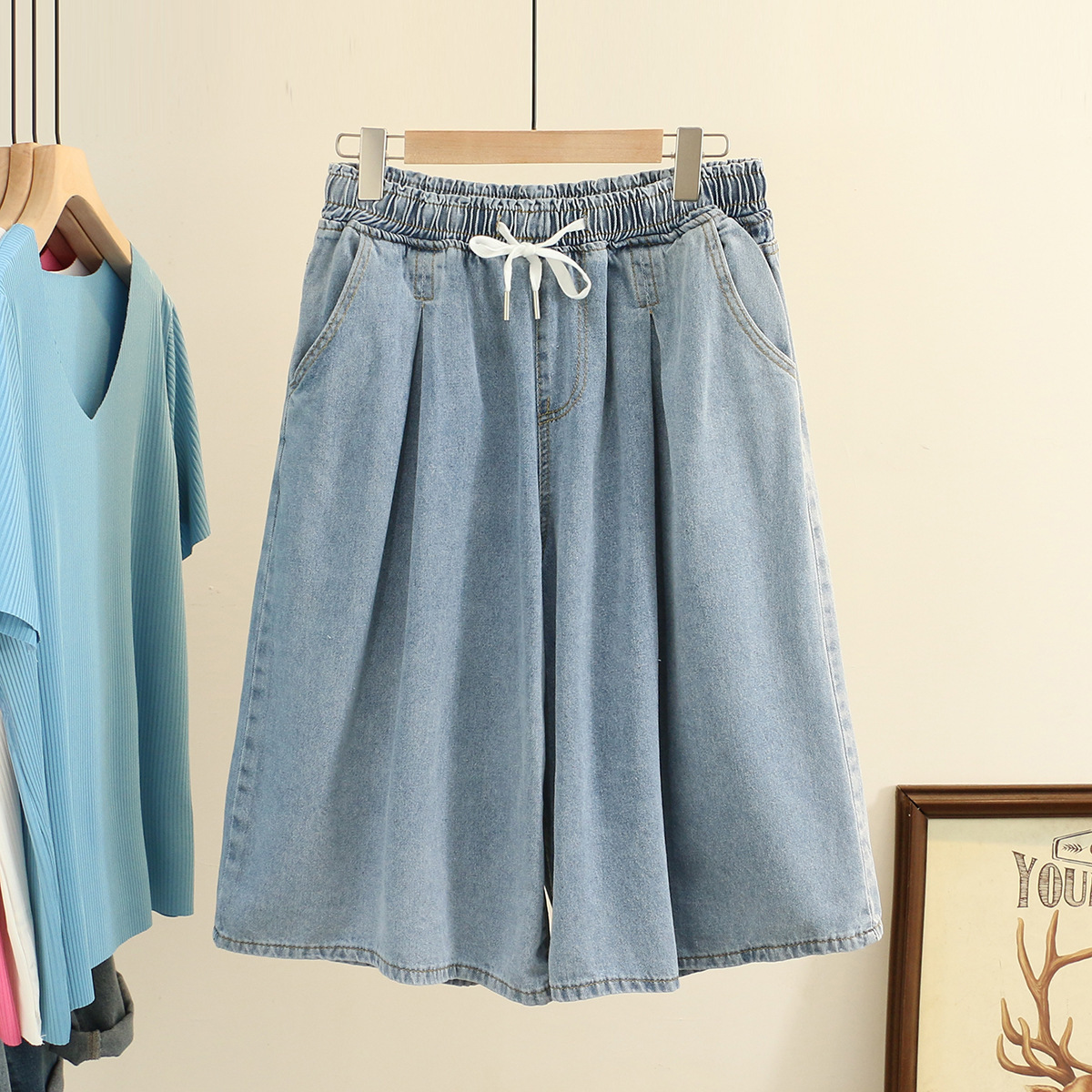 | nameOriginal | Summer new Korean style chubby girl simple Slimming Denim wide leg pants cropped pants plus size women's clothing 5097 |
