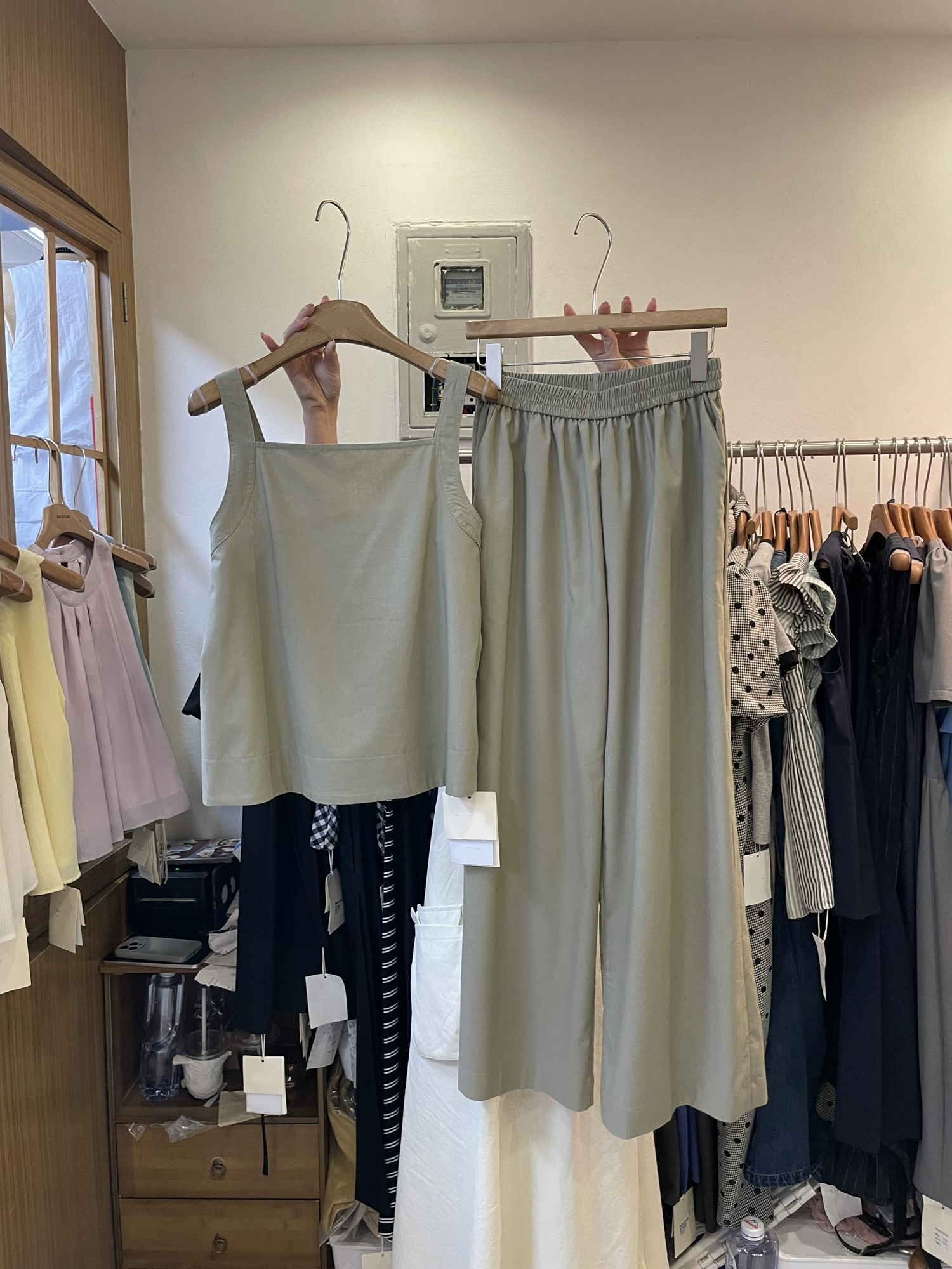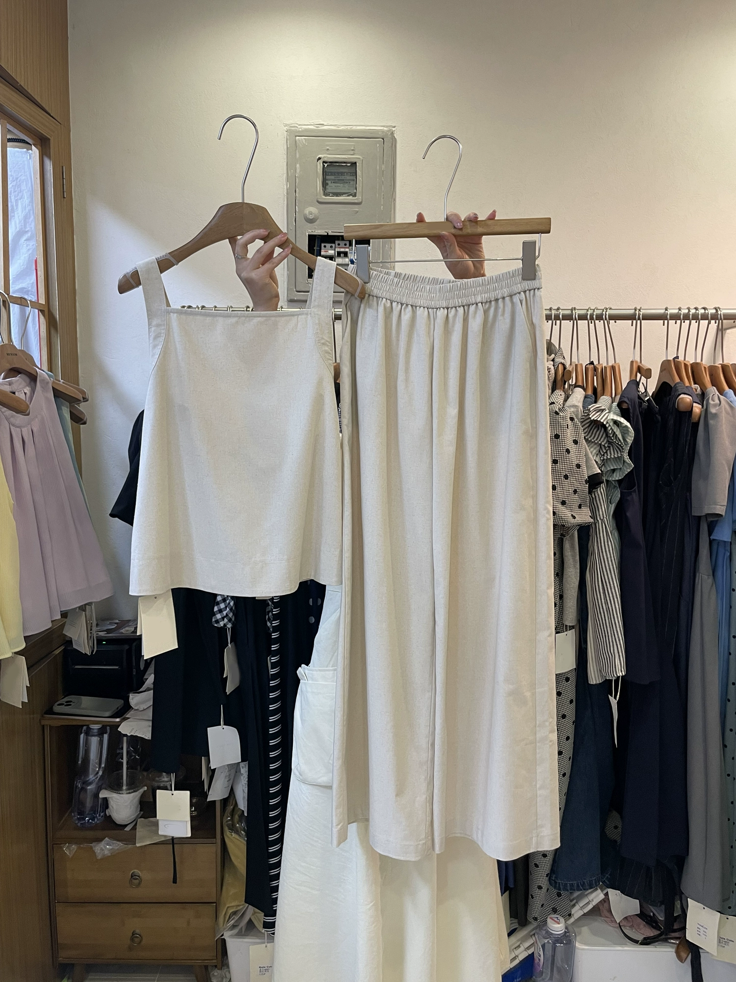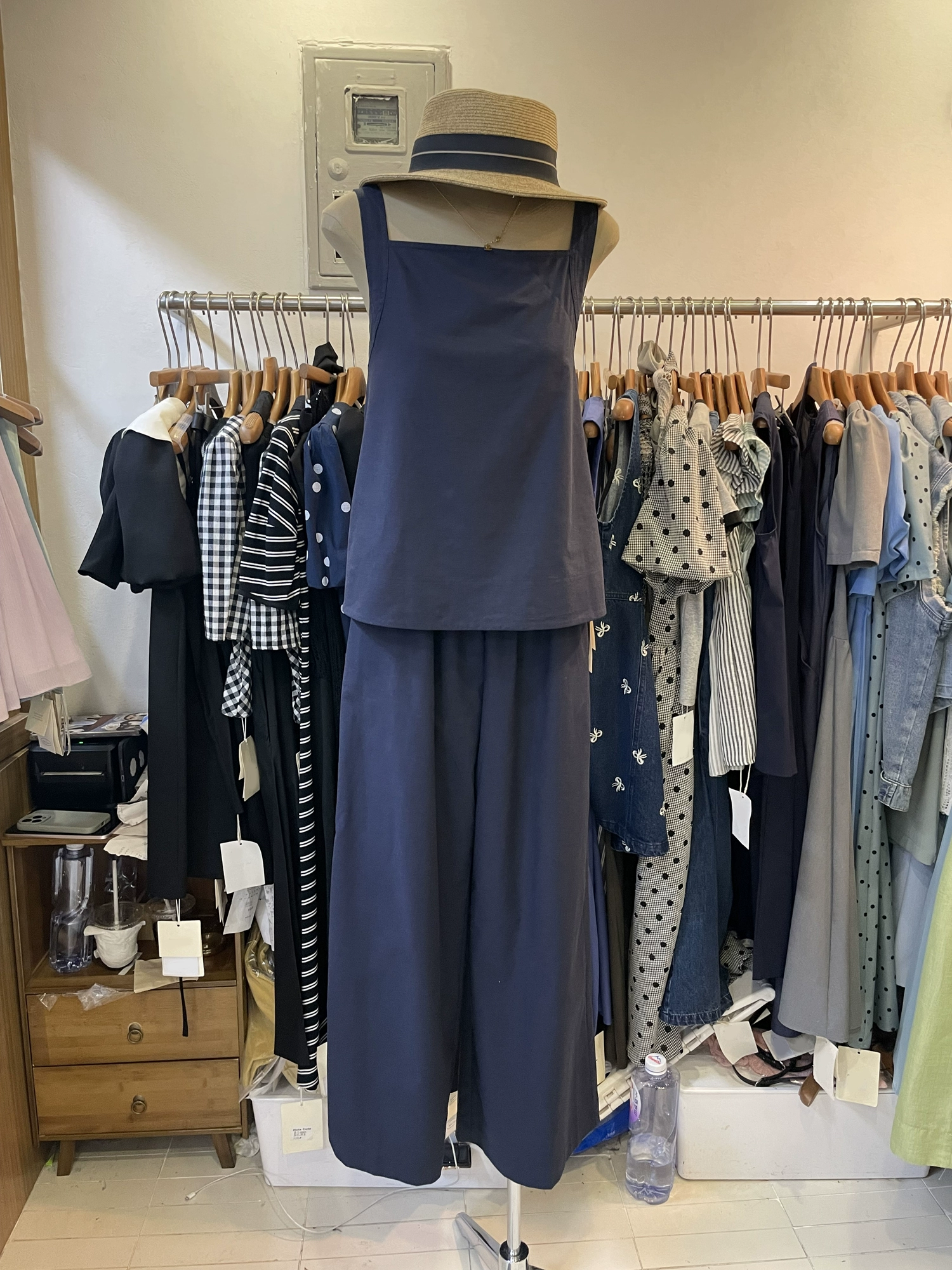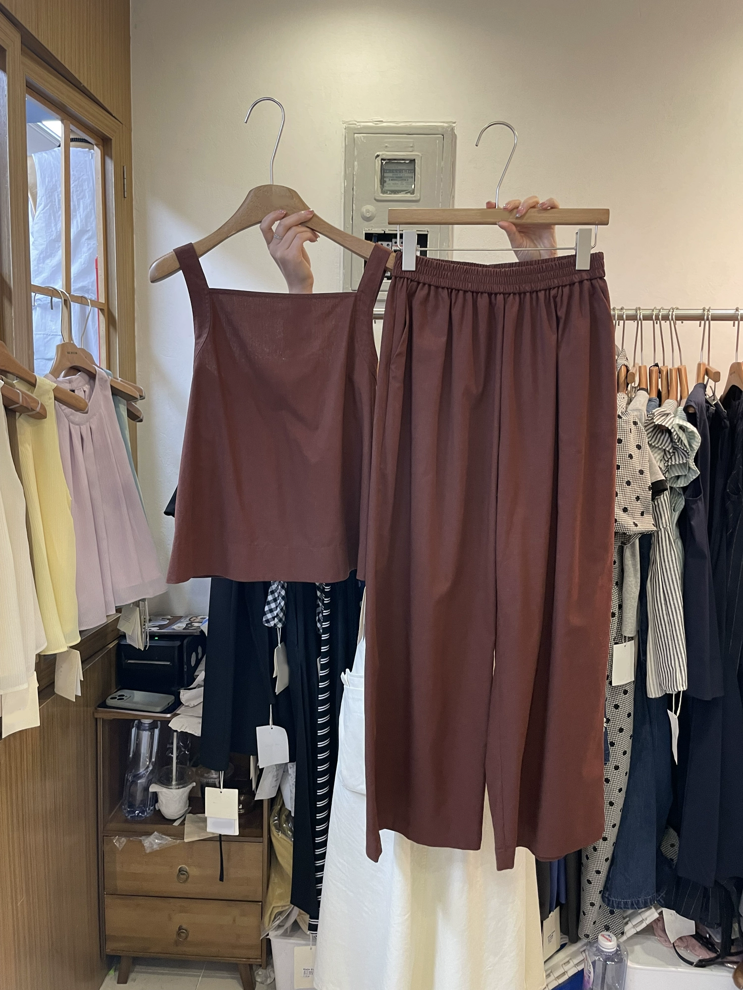 | nameOriginal | Summer new Korean style loose back tie bow suspender top + high waist elastic wide leg trousers two-piece set |