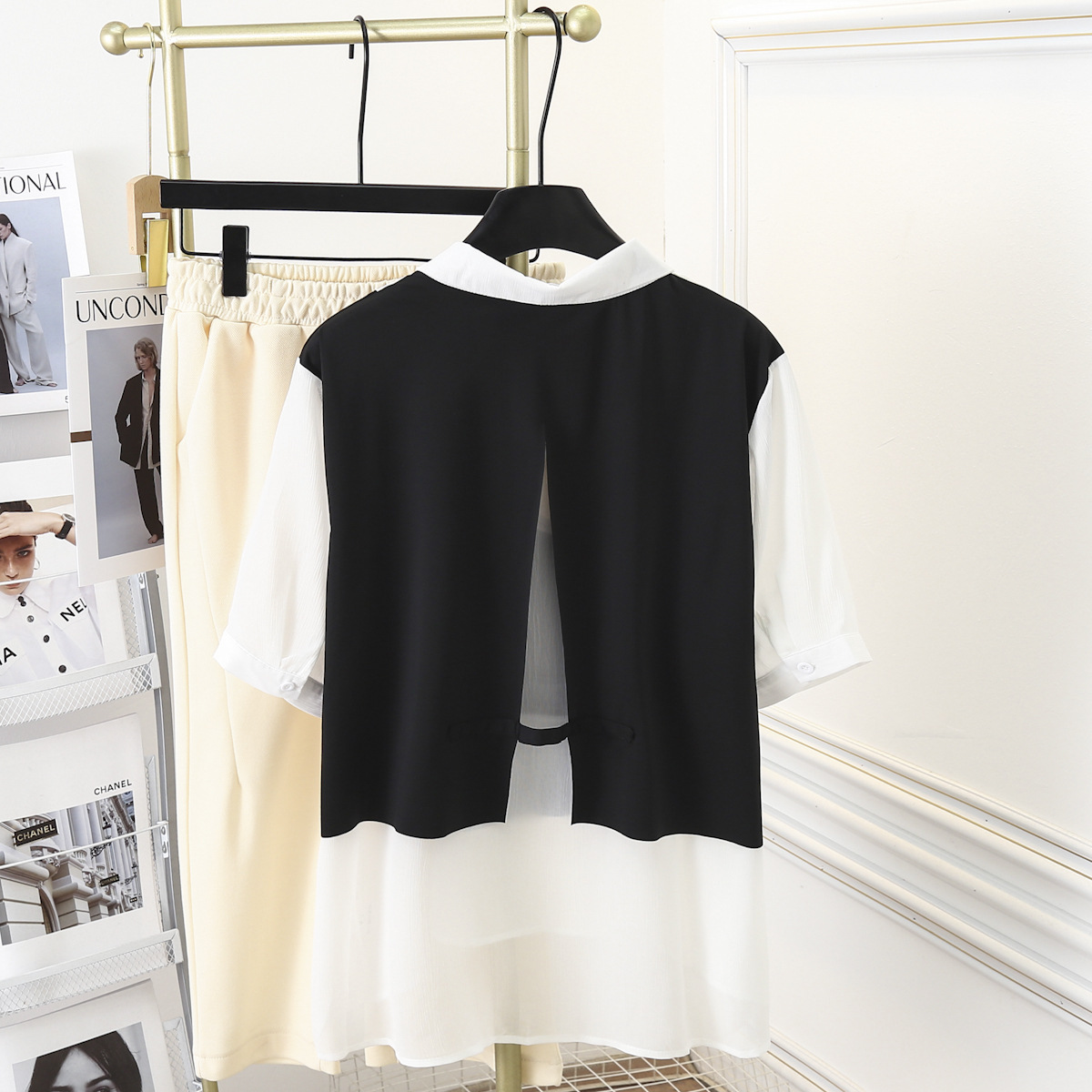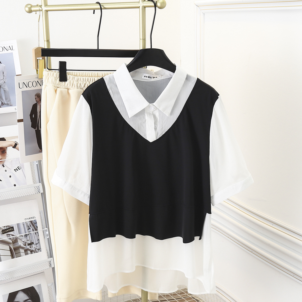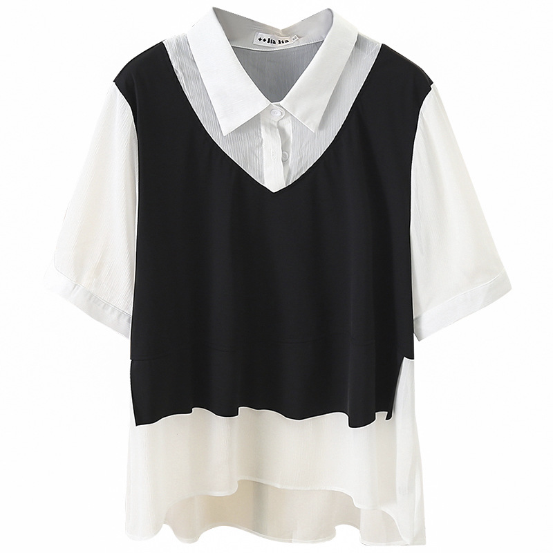 | nameOriginal | Summer new Korean version of 200kg fat MM fashion fake two short sleeve shirt jacket plus size women's fashion 5950 |