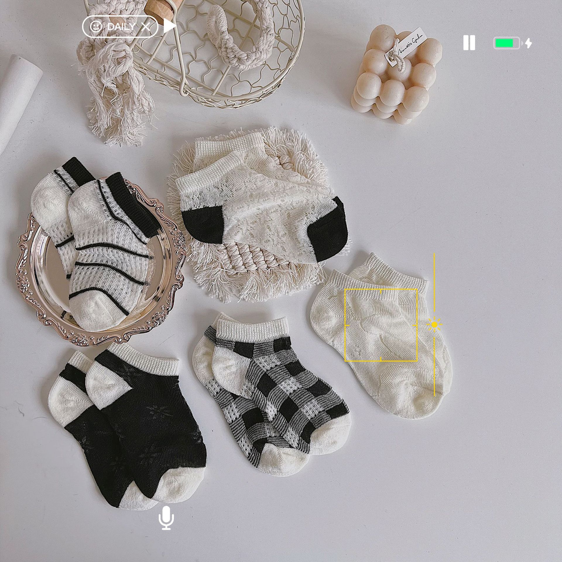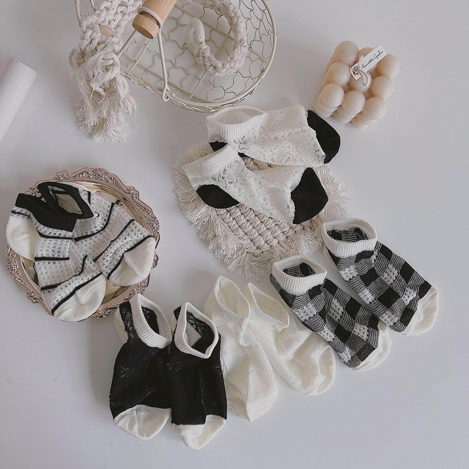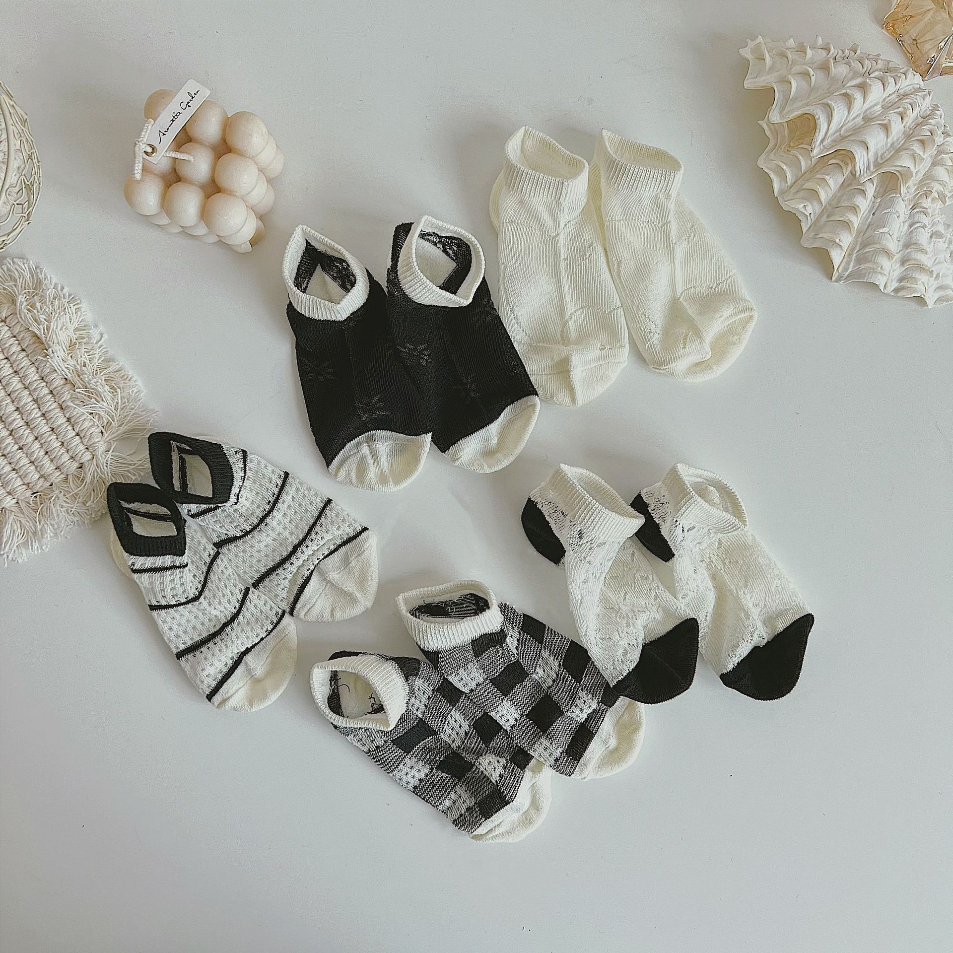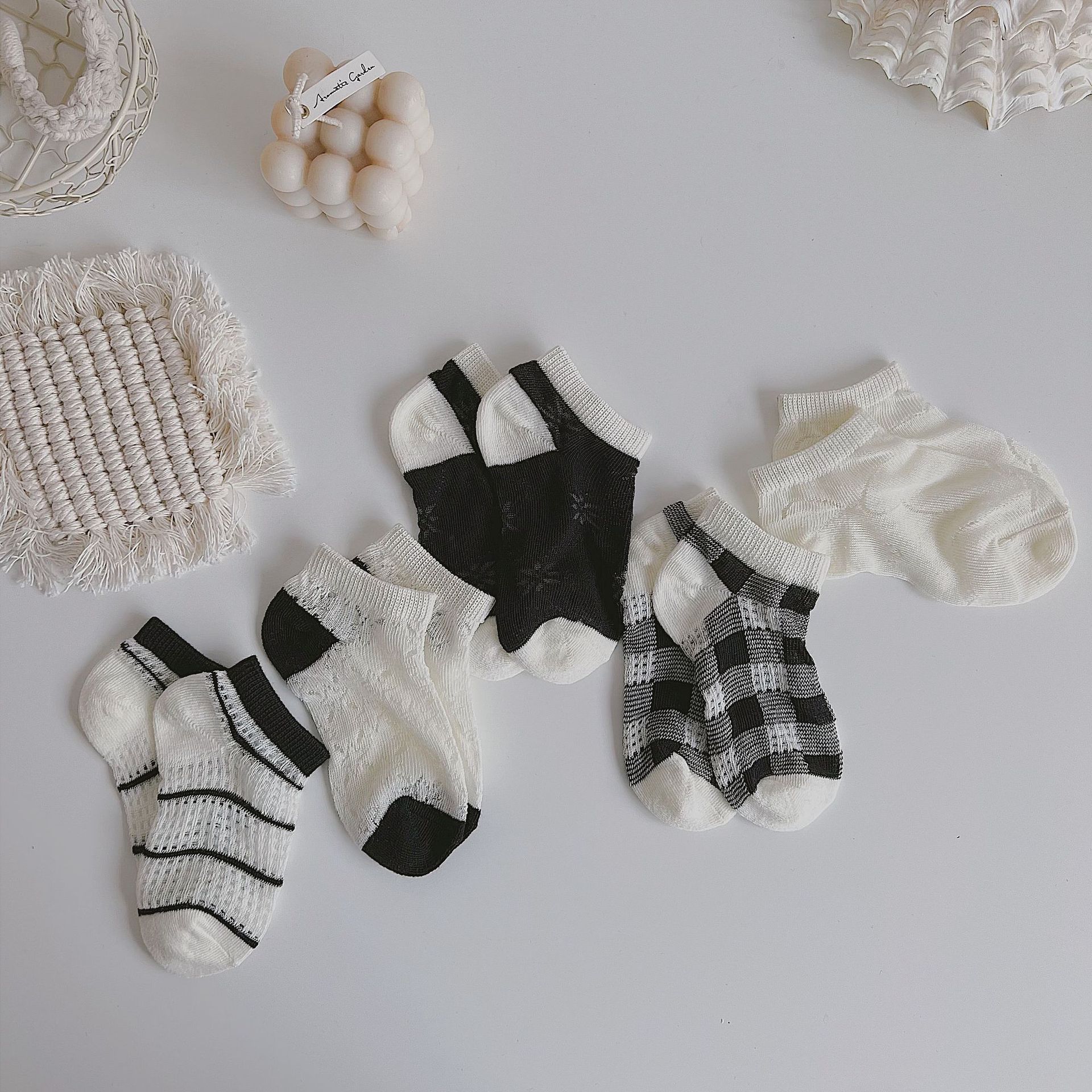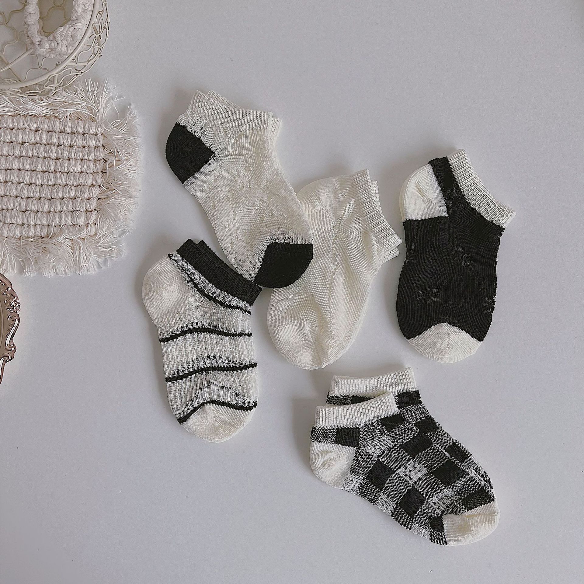 Summer new mesh thin simple wind black and white plaid striped children’s socks boys and girls boat Socks Crystal stockings