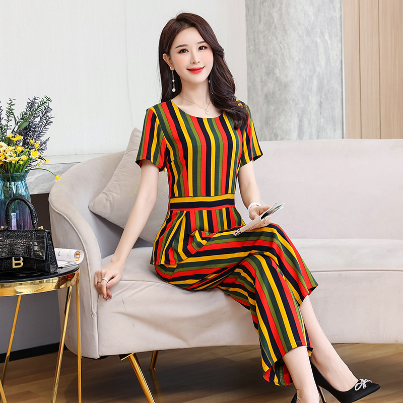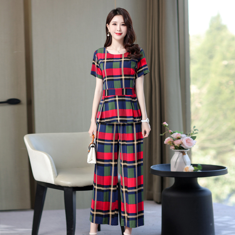 Summer New Middle-aged and Elderly Short-sleeved Cotton Silk suit Women’s Fashion Mother’s Elegant Wide-leg Pants Two-piece Set for Outer Wear