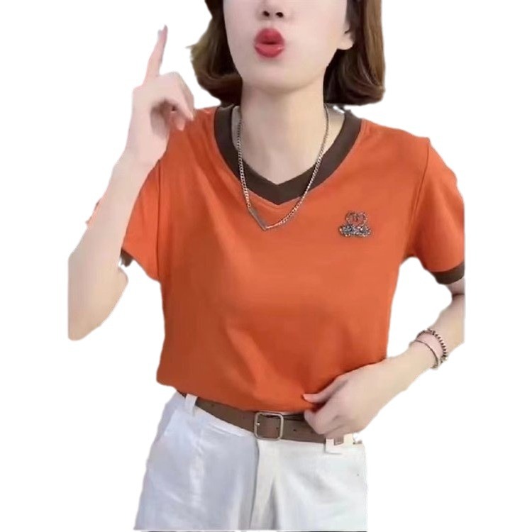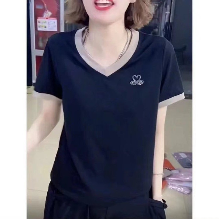 | nameOriginal | Summer New Middle-aged Women's V-neck Short-sleeved T-shirt Top Mother's Fashion Slimming Age-reducing Casual Base Shirt |