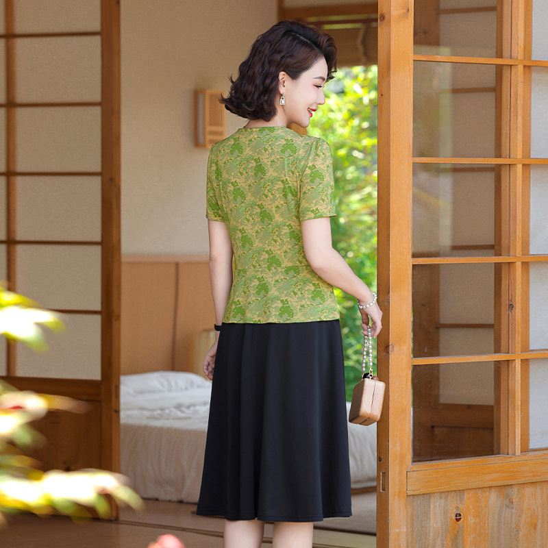 | nameOriginal | Summer New Mother's Short-sleeved dress Middle-aged and Elderly Women's Summer Fashion Western Style Slimming Fake Two-piece Skirt |