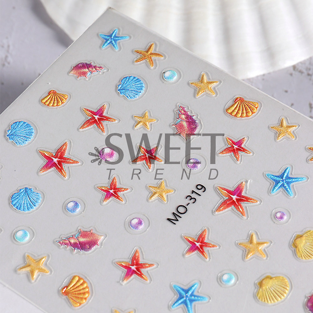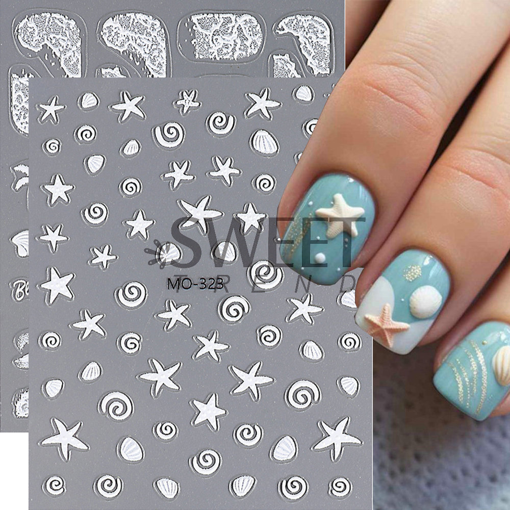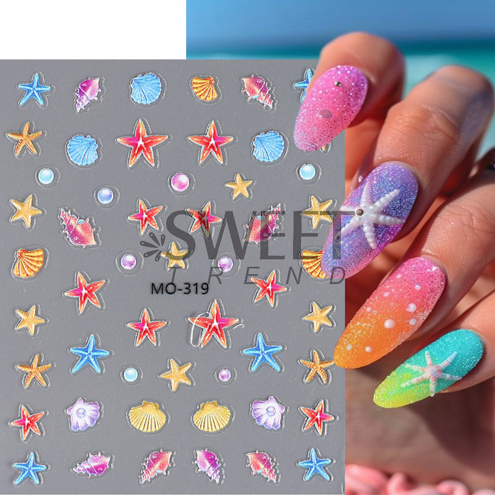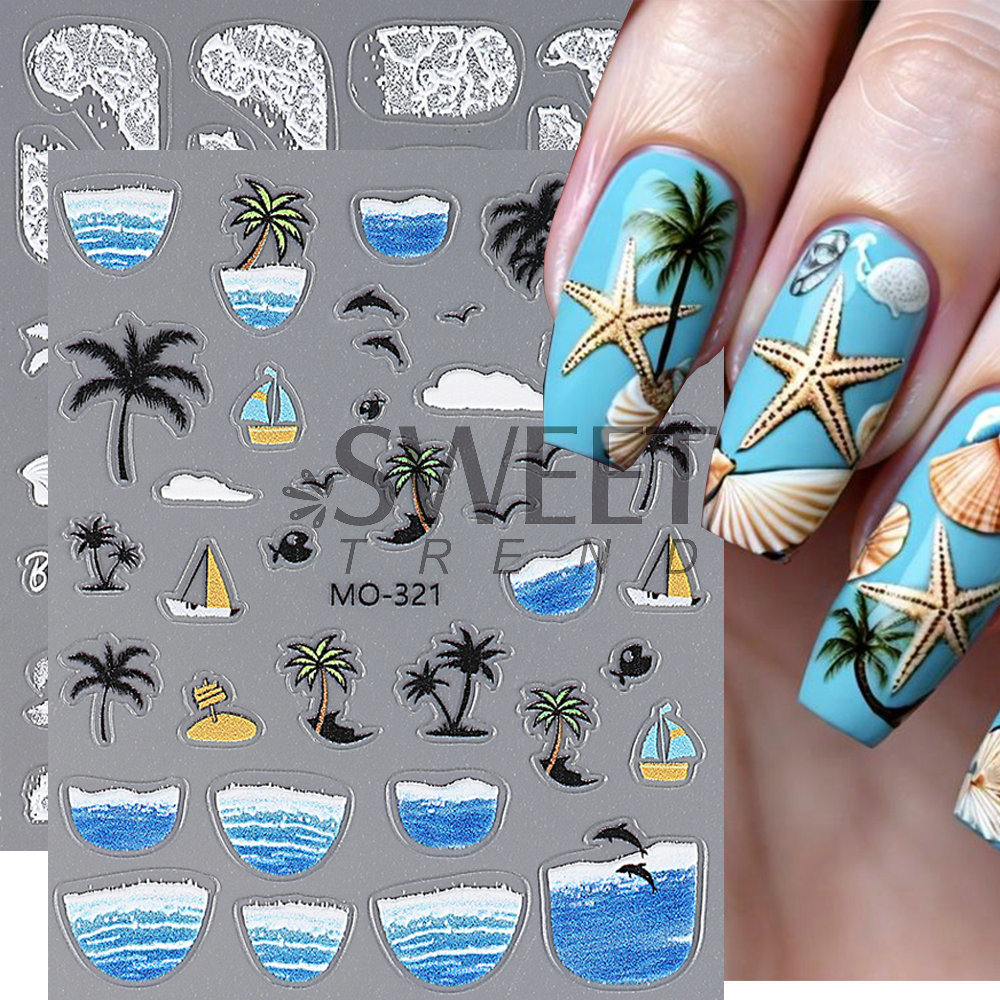 | nameOriginal | Summer New Nail Art Stickers Wholesale Embossed Stereo Ocean Coconut Tree Starfish Shell Nail Back Adhesive Nail |