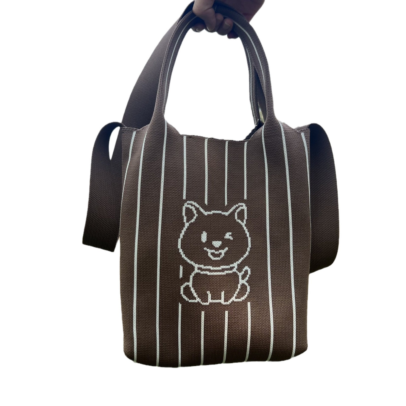 Summer New Primary and Secondary School Students Cartoon Large Capacity Knitted Bag All-match Shoulder Bag Crossbody Bag Class Tote Bag