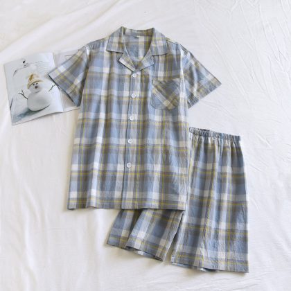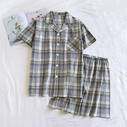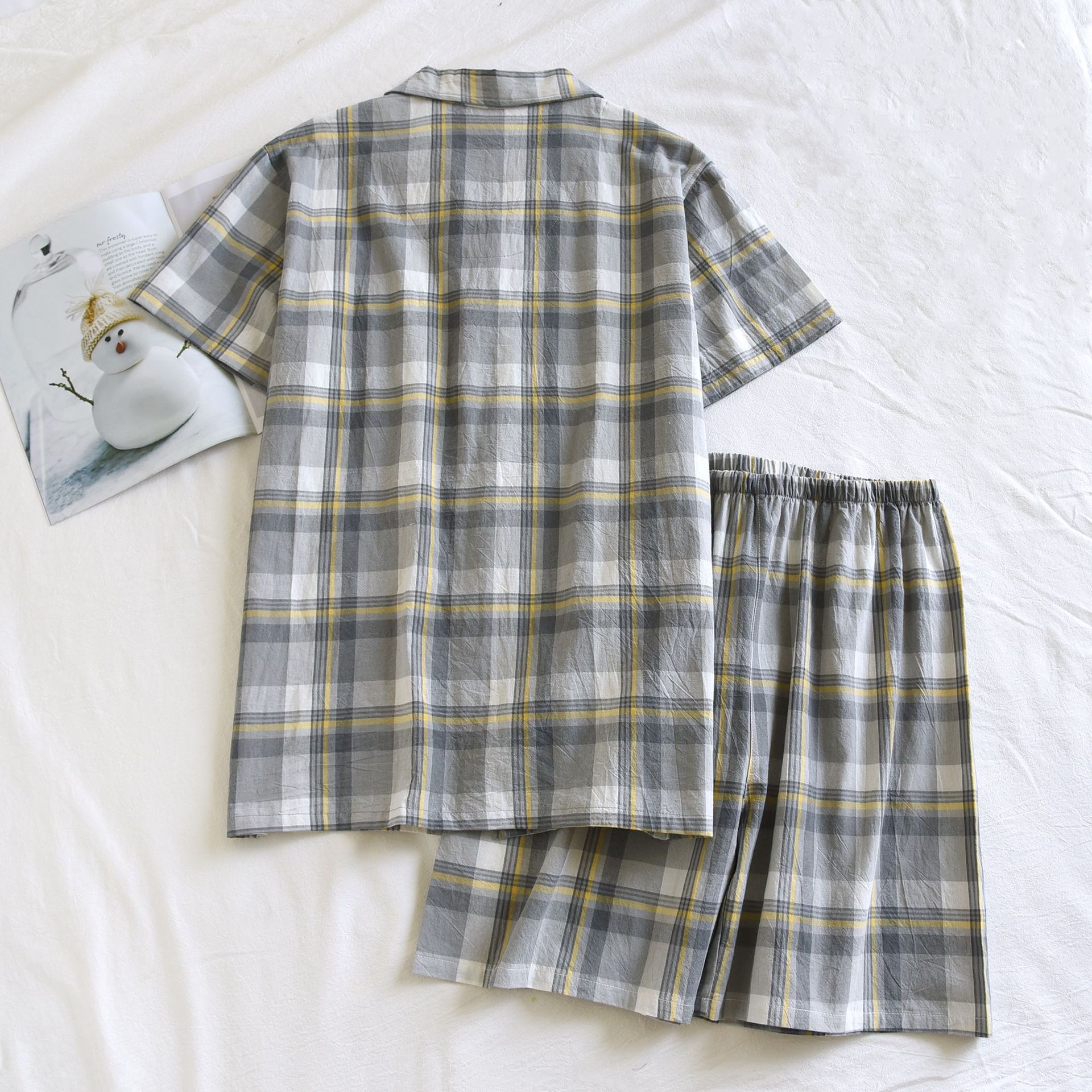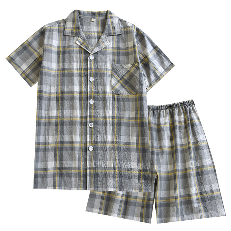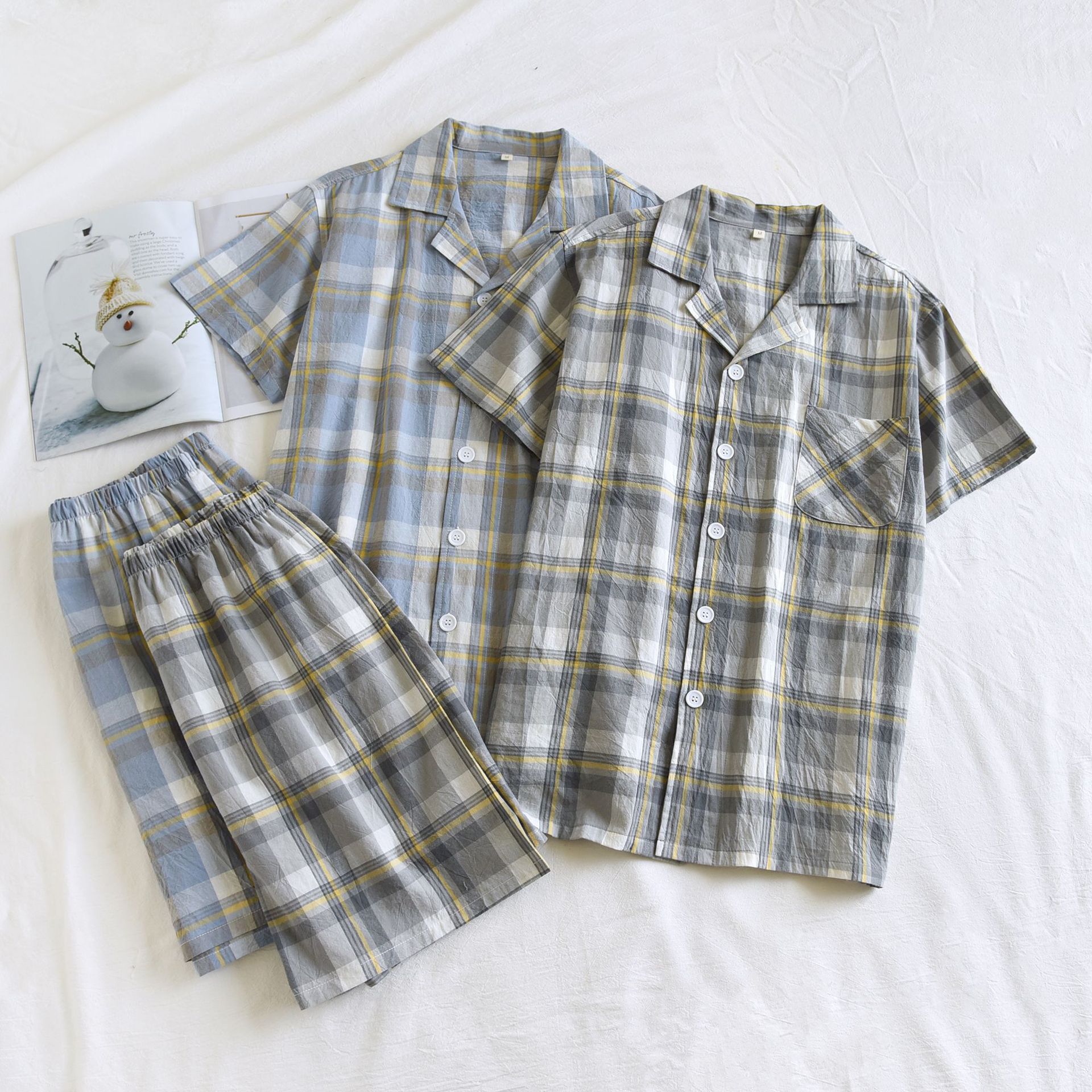 Summer new pure cotton washing cotton men’s pajamas leisure simple plaid suit cotton home clothing manufacturers direct supply